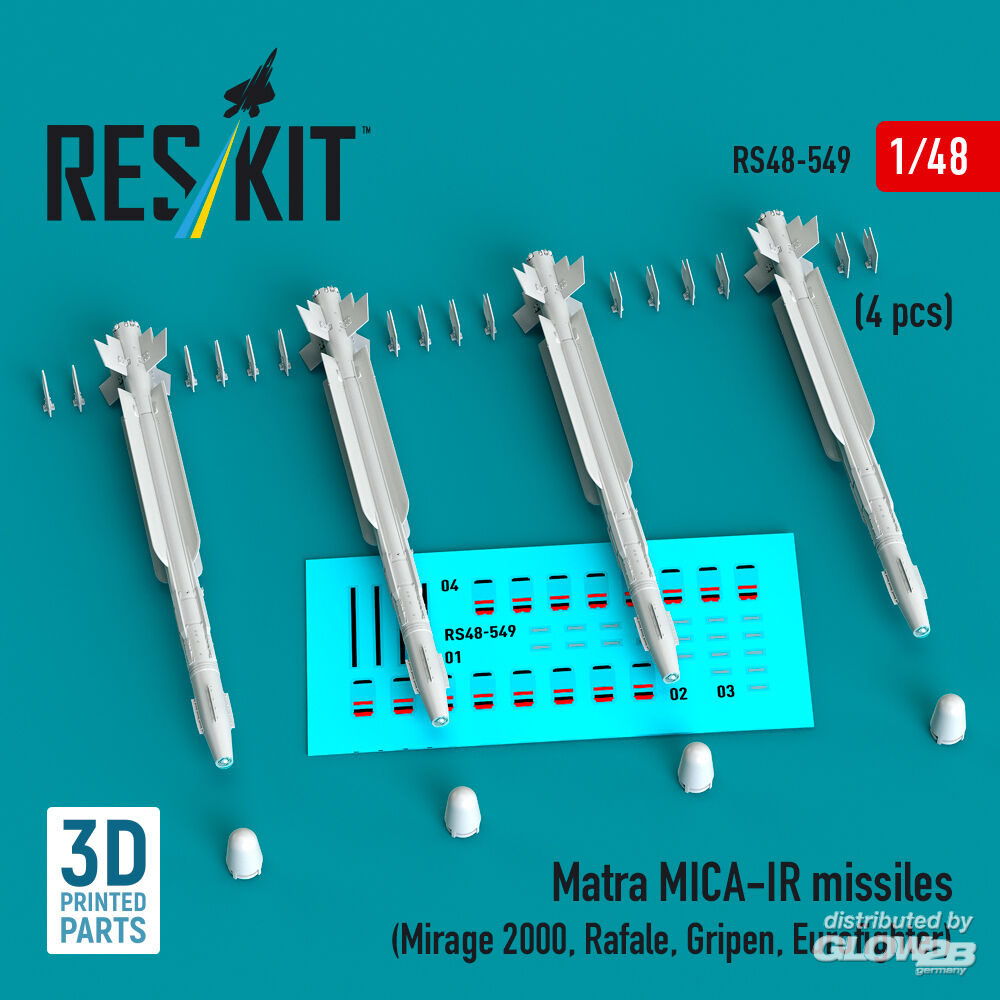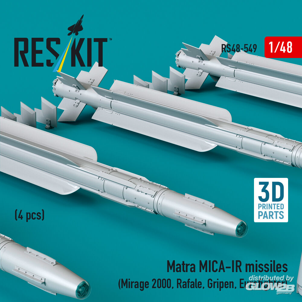 ResKit Models: Matra MICA-IR missiles (4 pcs) (Mirage 2000, Rafale, Gripen, Eurofighter) (3D Printed) in 1:48 [4594105493]