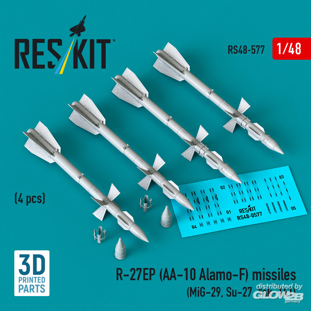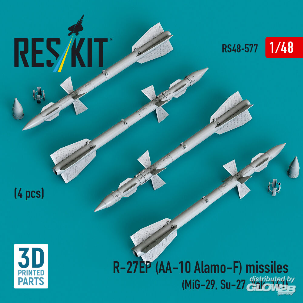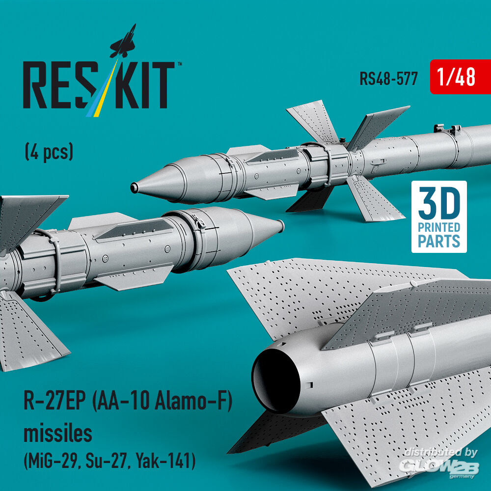 ResKit Models: R-27EP (AA-10 Alamo-F) missiles (4 pcs) (MiG-29, Su-27, Yak-141) (3D Printed) in 1:48 [4594105776]