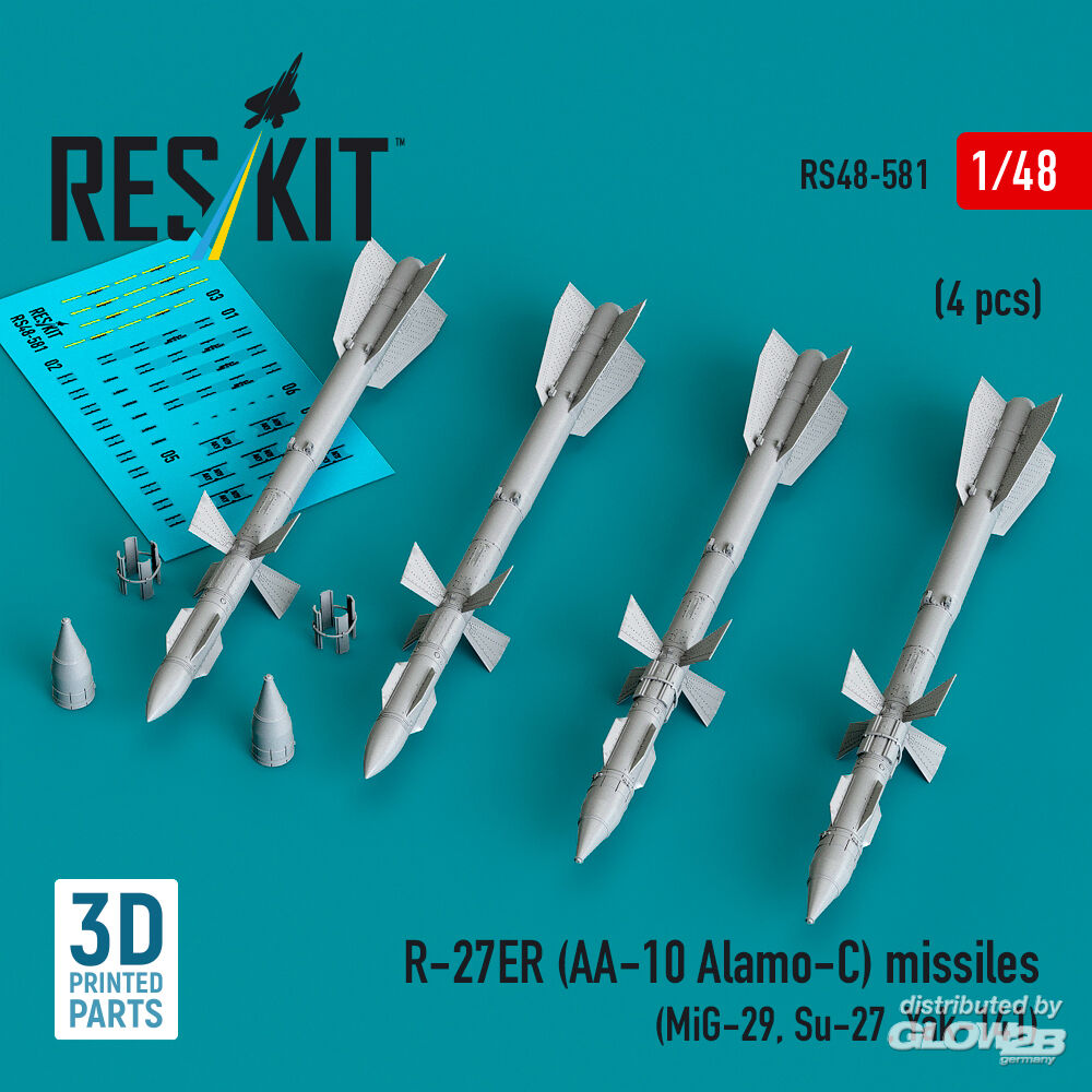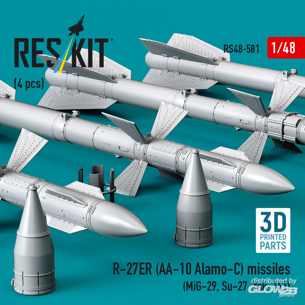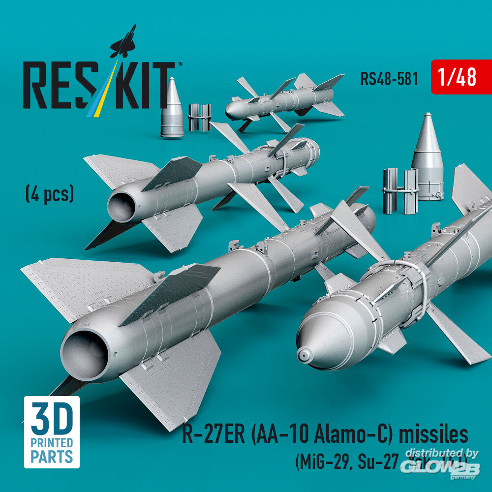ResKit Models: R-27ER (AA-10 Alamo-C) missiles (4 pcs) (MiG-29, Su-27, Yak-141) (3D Printed) in 1:48 [4594105813]