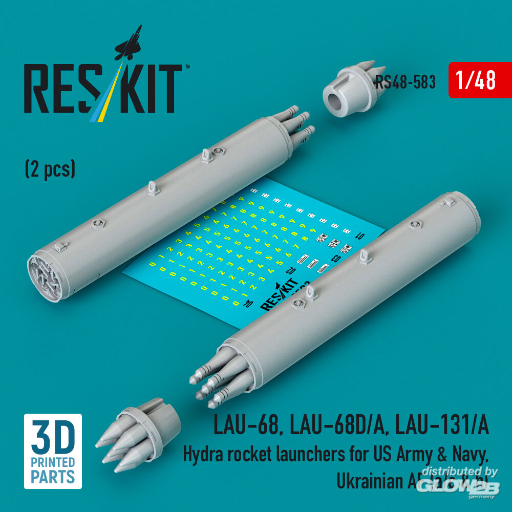 ResKit Models: LAU-68, LAU-68D/A, LAU-131/A Hydra rocket launchers for US Army & Navy, Ukrainian AF (a/c & h) (2pcs) (3D Printed) in 1:48 [4594105837]