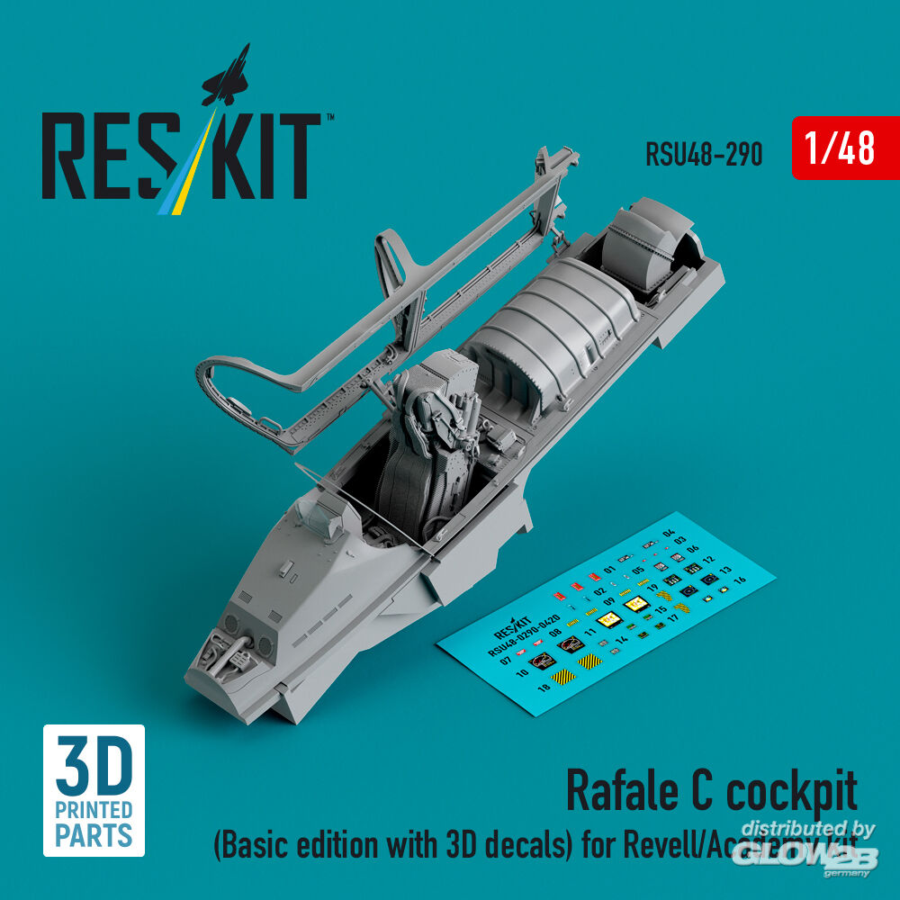 ResKit Models: Rafale C cockpit (Basic edition with 3D decals) for Revell/Academy kit (3D printed) in 1:48 [4594202901]
