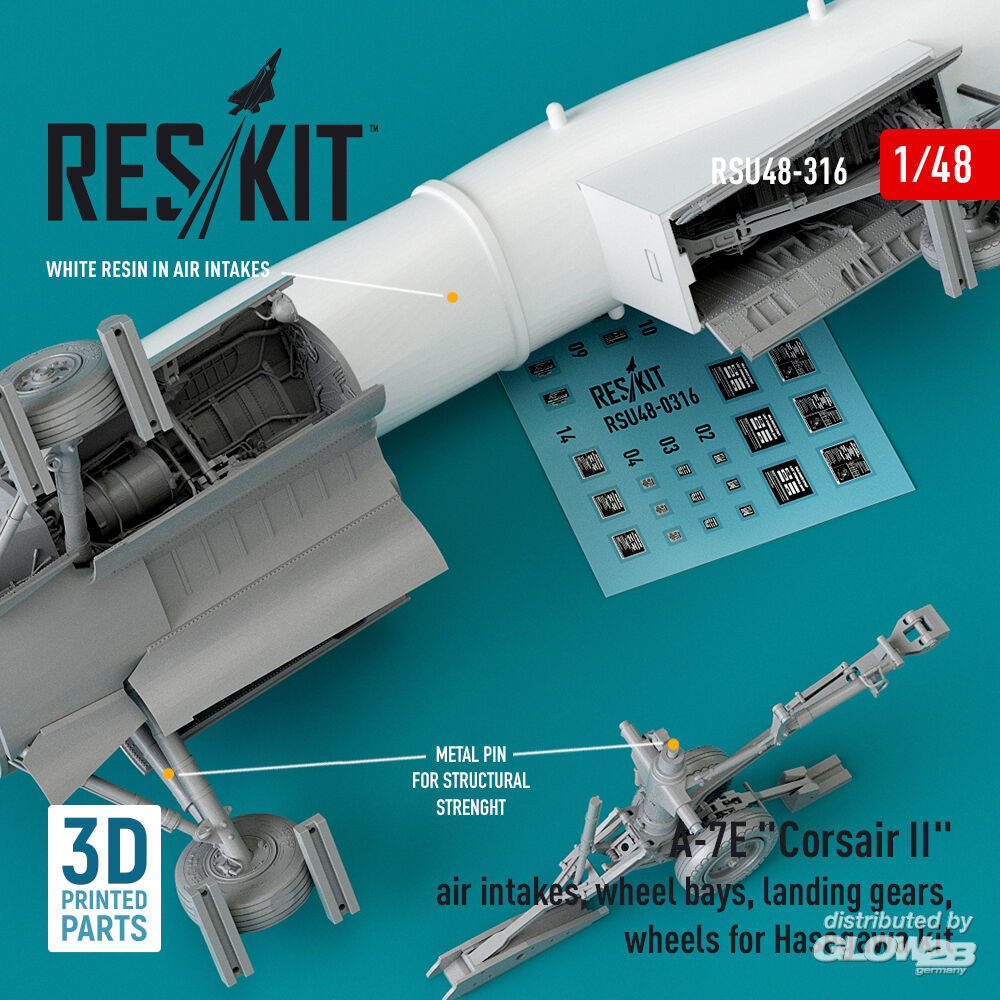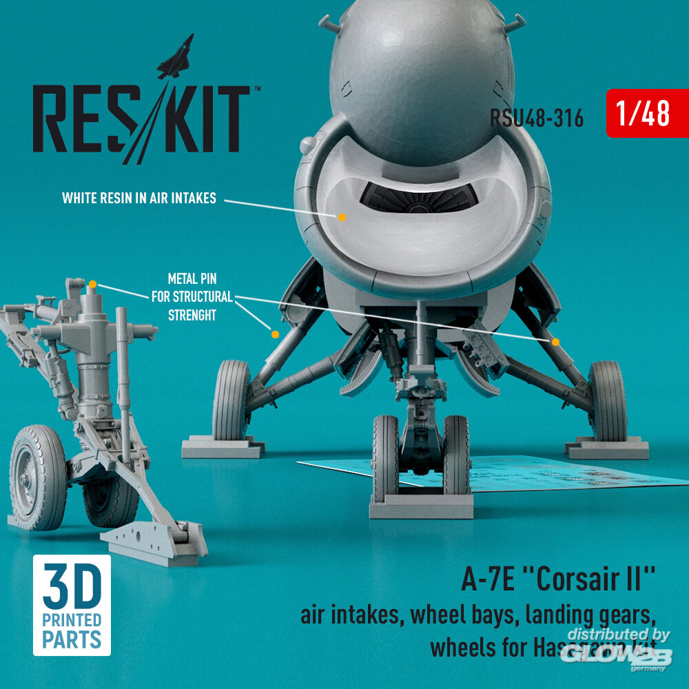 ResKit Models: A-7E Corsair II air intakes, wheel bays, landing gears, wheels for Hasegawa kit (3D Printed) in 1:48 [4594203168]