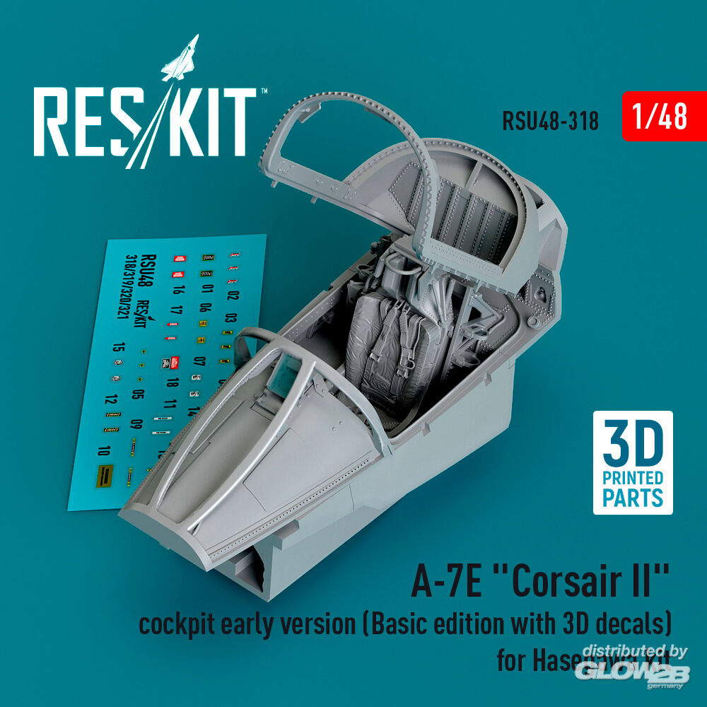 ResKit Models: A-7E Corsair II cockpit early version (Basic edition with 3D decals) for Hasegawa kit (3D Printed) in 1:48 [4594203182]