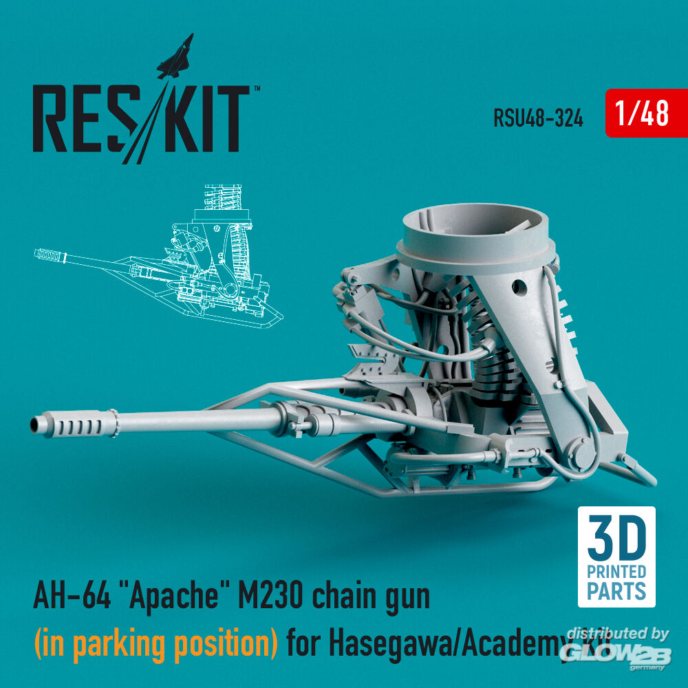 ResKit Models: AH-64 Apache M230 chain gun (in parking position) for Hasegawa/Academy kit (3D Printed) in 1:48 [4594203243]