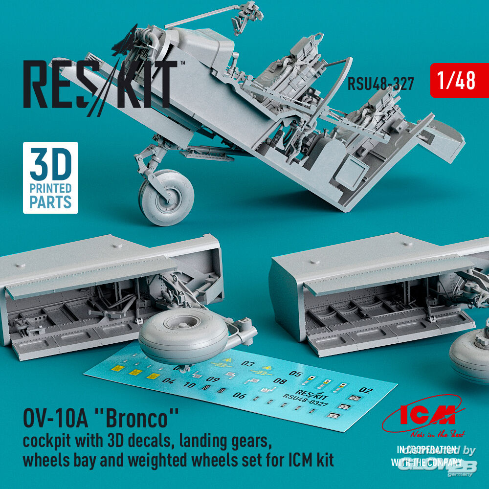 ResKit Models: OV-10A Bronco cockpit, landing gears, wheels bay and weighted wheels set for ICM kit (3D Printed) in 1:48 [4594203274]