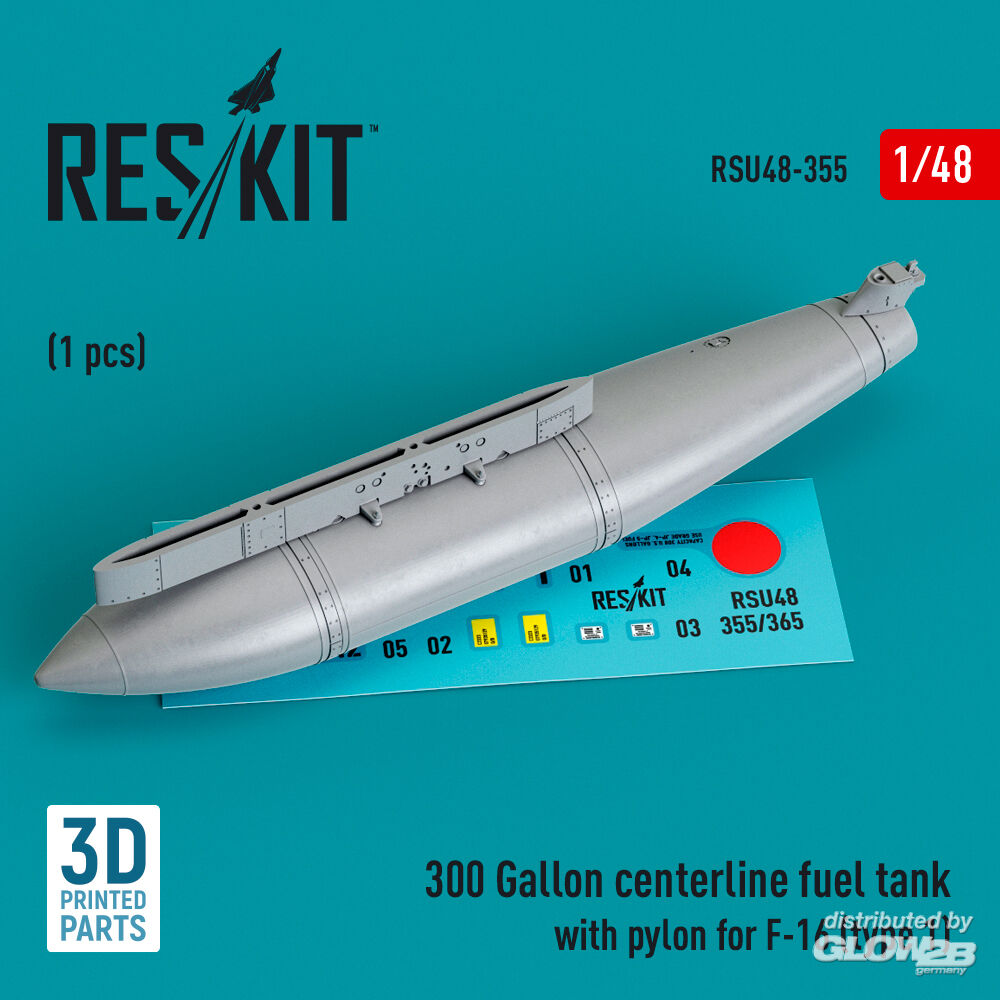 ResKit Models: 300 Gallon centerline fuel tank with pylon for F-16 (A/B/C/D/E/F/I) (type 1) (1 pcs) (3D Printed) in 1:48 [4594203557]