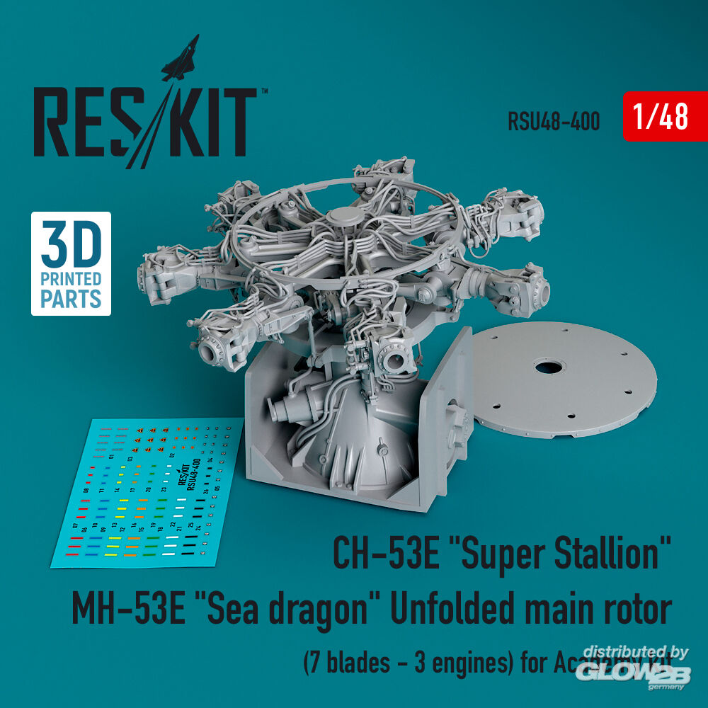 ResKit Models: CH-53E Super Stallion, MH-53E Sea dragon unfolded main rotor (7 blades - 3 engines) for Academy kit (3D printed) in 1:48 [4594204004]