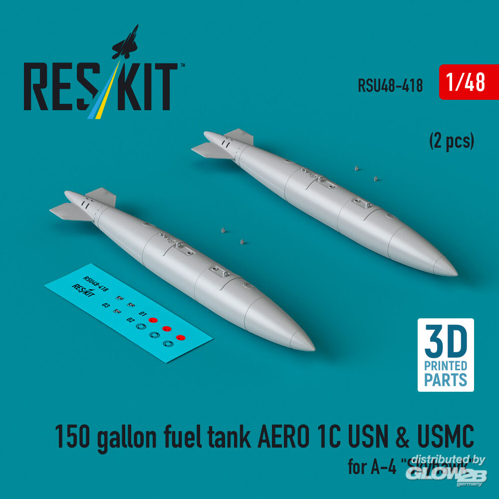 ResKit Models: 150 gallon fuel tank AERO 1C USN & USMC (2 pcs) for A-4 Skyhawk (3D Printed) in 1:48 [4594204189]