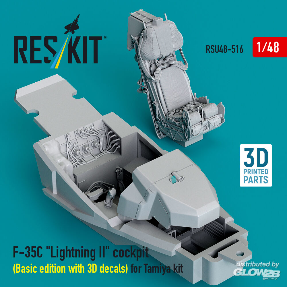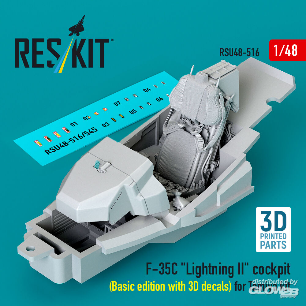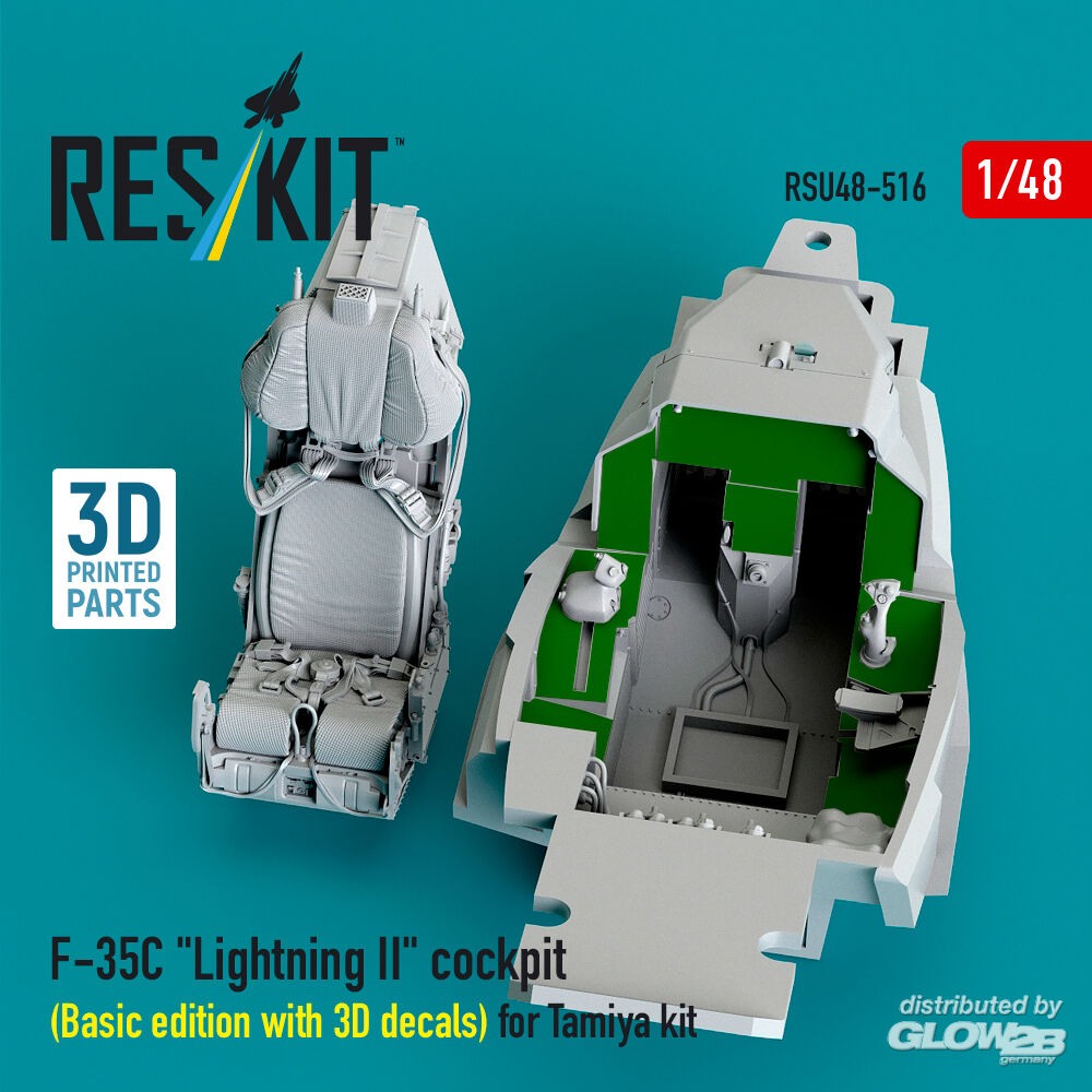 ResKit Models: F-35C Lightning II cockpit (Basic edition with 3D decals) for Tamiya kit (3D Printed) in 1:48 [4594205162]