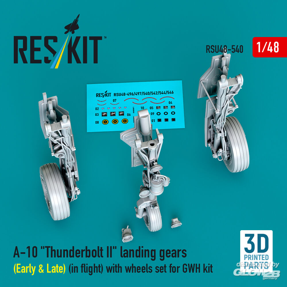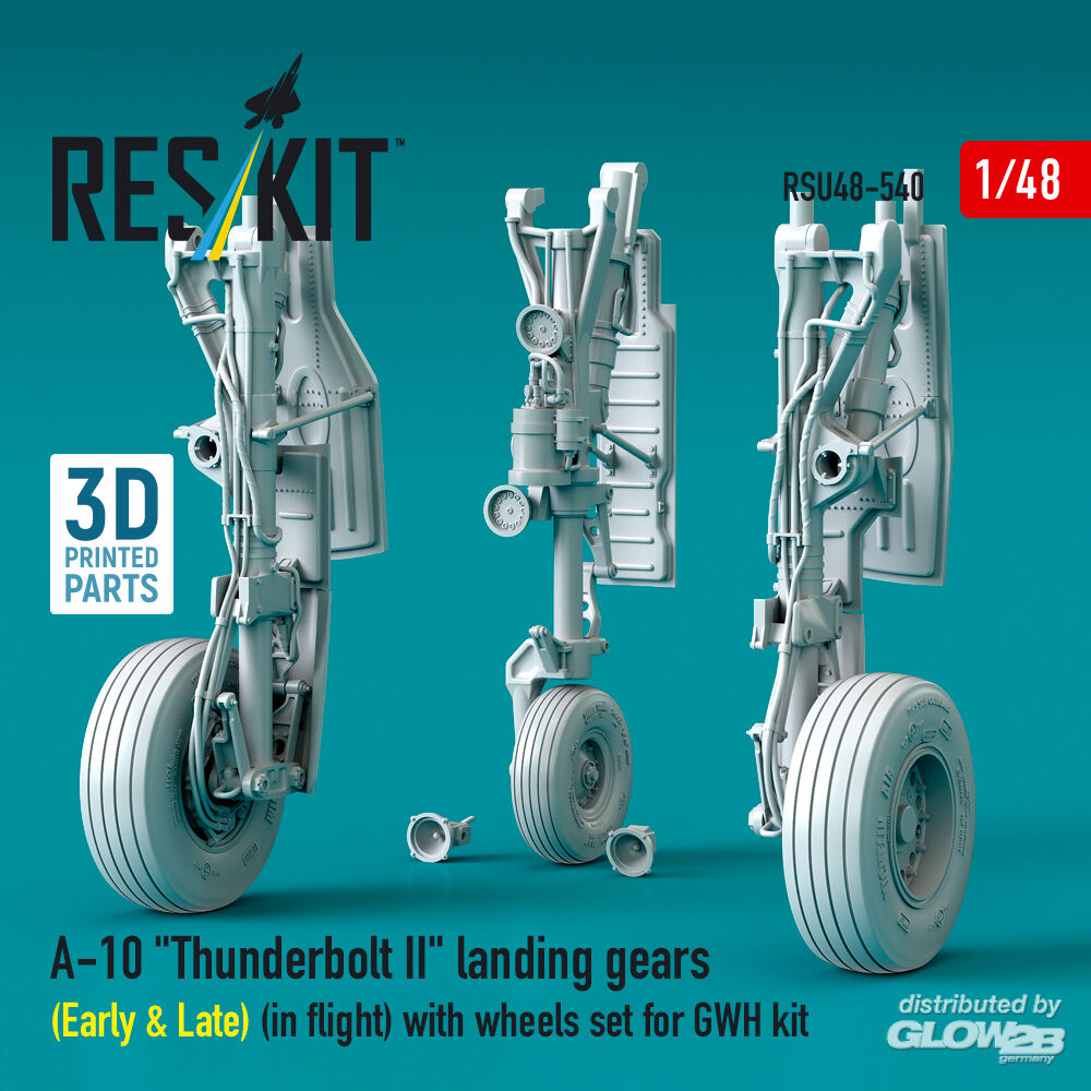 ResKit Models: A-10 Thunderbolt II landing gears (Early & Late) (in flight) with wheels set for GWH kit (3D Printed) in 1:48 [4594205407]
