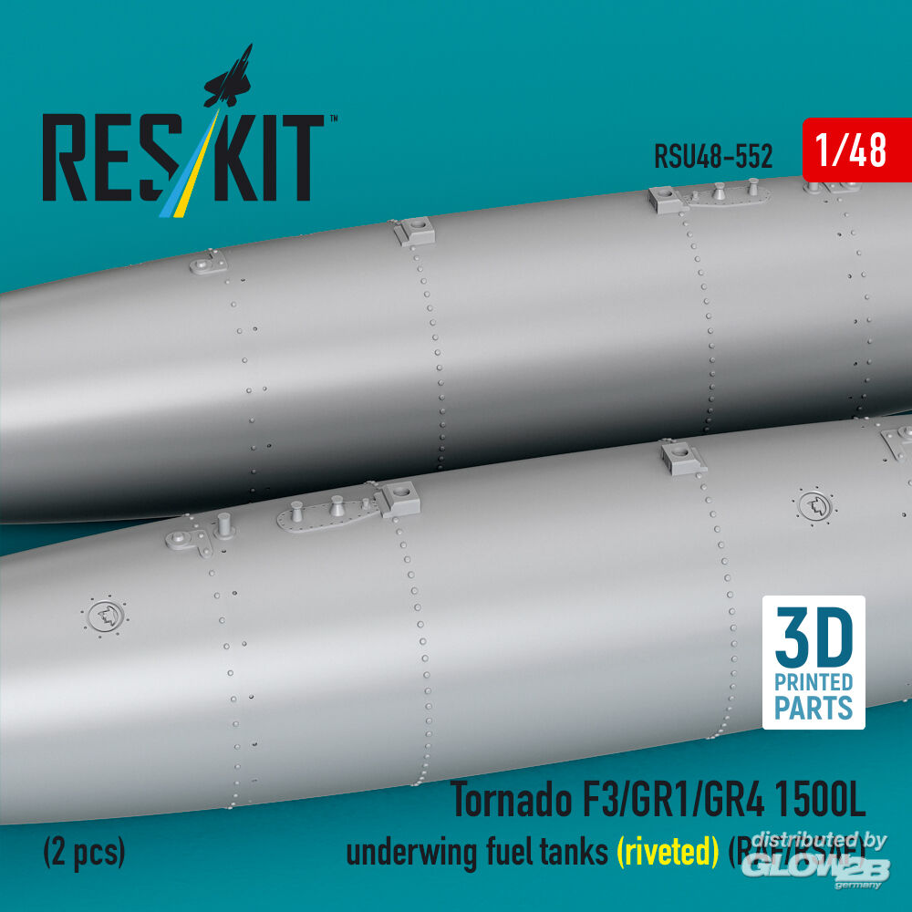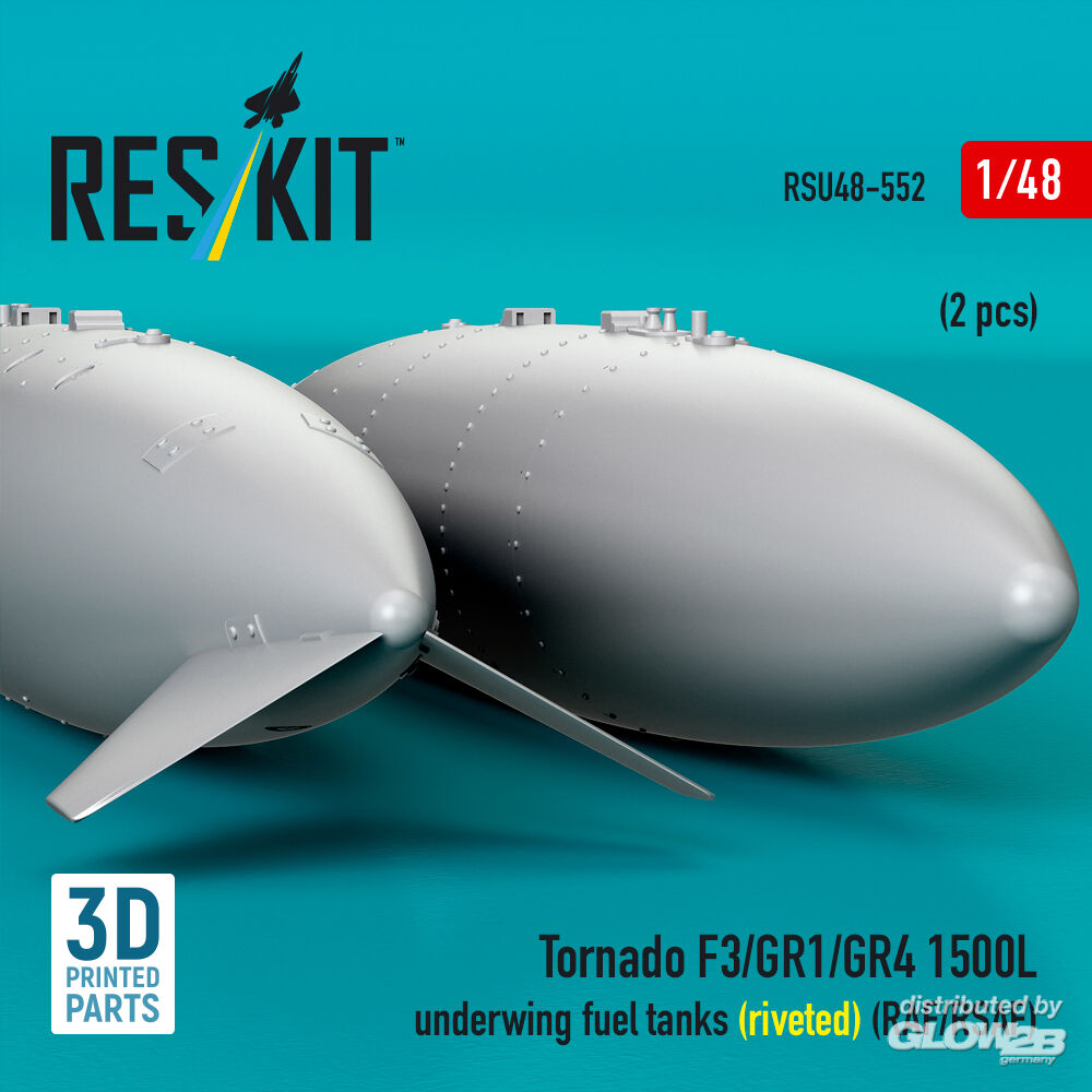 ResKit Models: Tornado F3/GR1/GR4 1500L underwing fuel tanks (riveted) (RAF/RSAF) (2 pcs) (3D Printed) in 1:48 [4594205520]