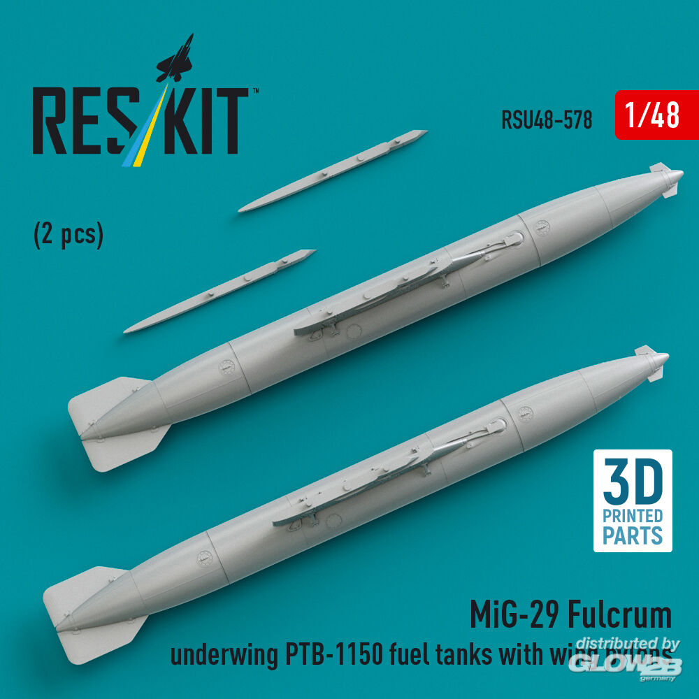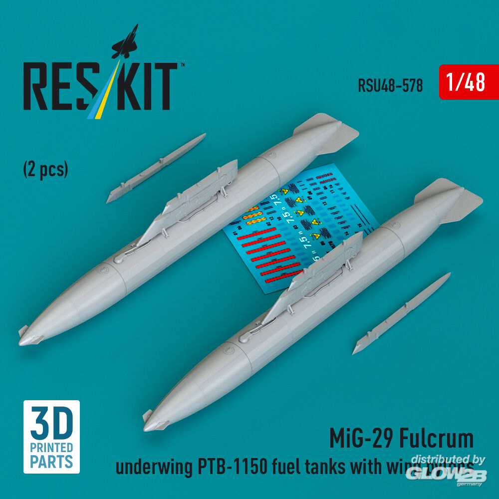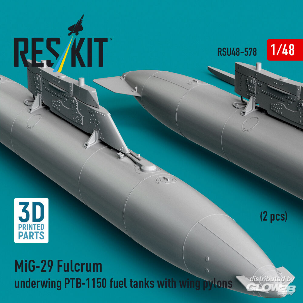 ResKit Models: MiG-29 Fulcrum underwing PTB-1150 fuel tanks with wing pylons (2 pcs) (3D Printed) in 1:48 [4594205780]
