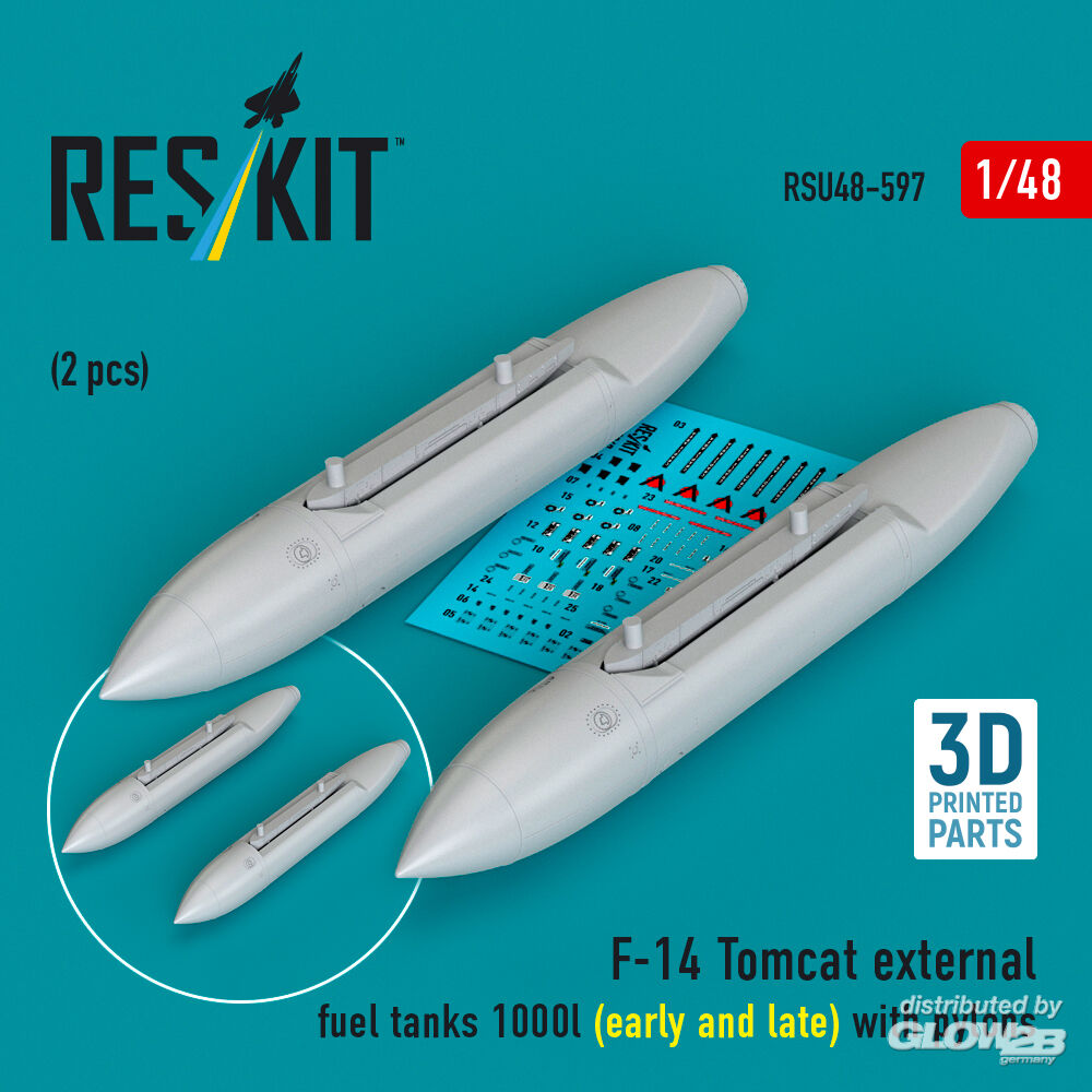 ResKit Models: F-14 Tomcat external fuel tanks 1000l (early and late) with pylons (2 pcs) (3D Printed) in 1:48 [4594205971]