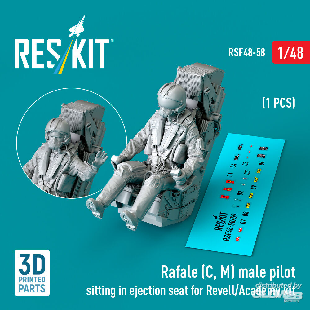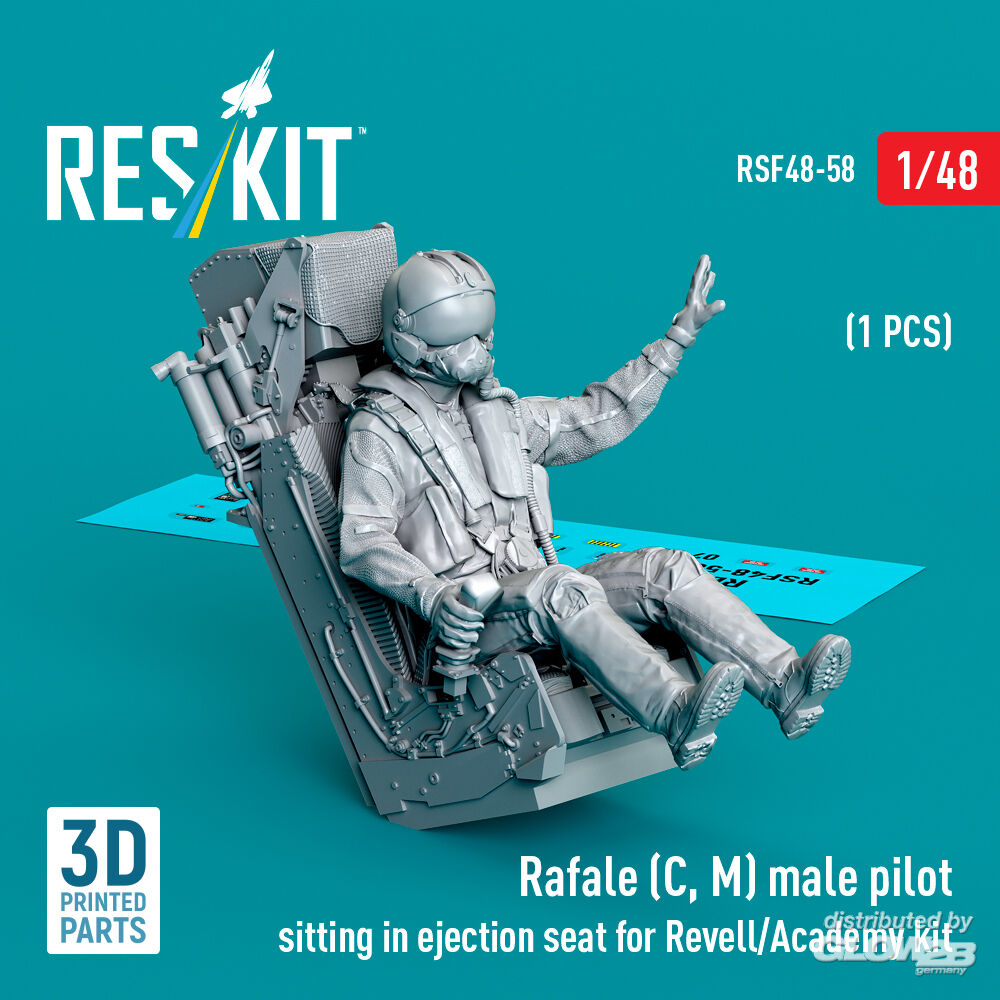 ResKit Models: Rafale (C, M) male pilot sitting in ejection seat for Revell/Academy kit (1 pcs) (3D Printed) in 1:48 [4594300584]