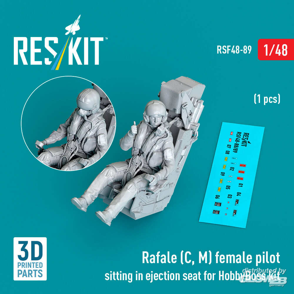 ResKit Models: Rafale (C, M) female pilot sitting in ejection seat for HobbyBoss kit (1 pcs) (3D Printed) in 1:48 [4594300898]