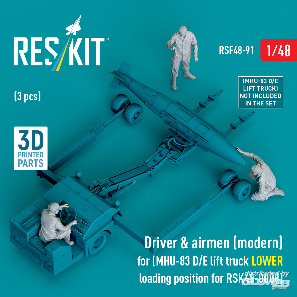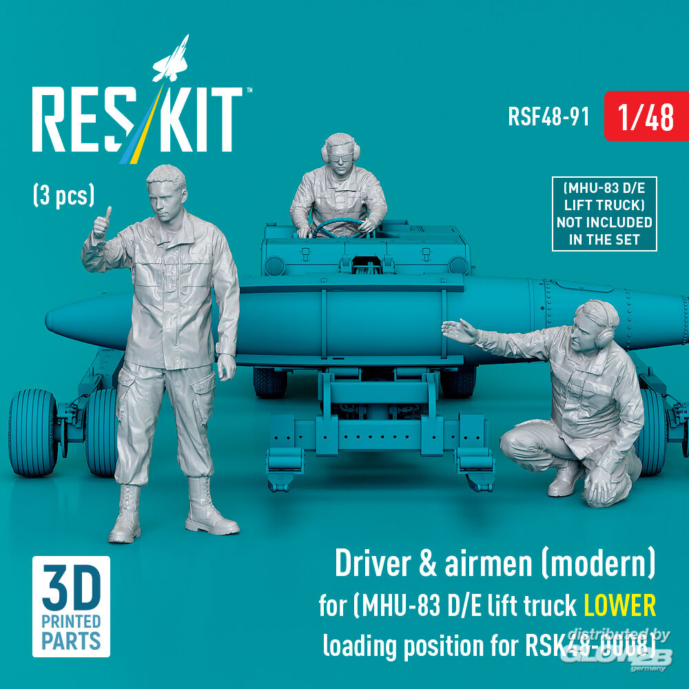 ResKit Models: Driver & airmen (modern) (3 pcs) (MHU-83 D/E lift truck LOWER loading position for RSK48-0008) (3D Printed) in 1:48 [4594300911]