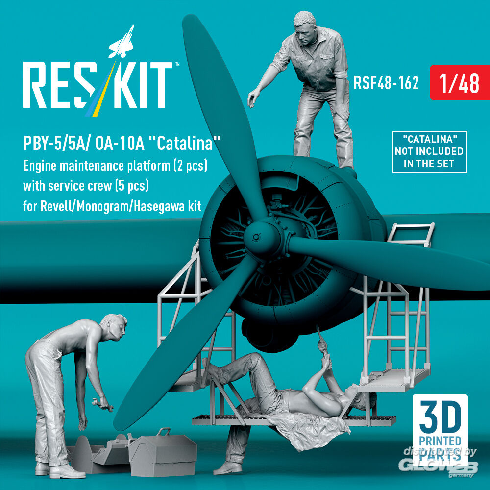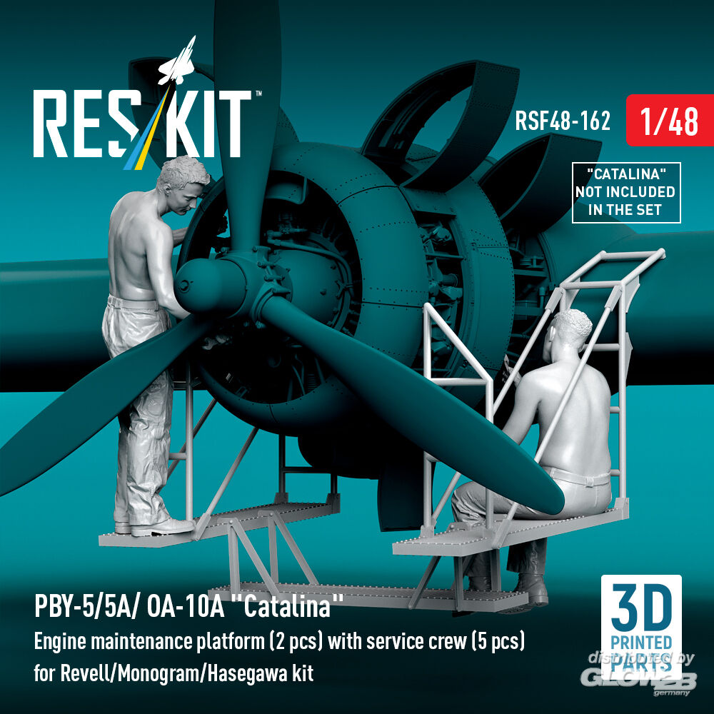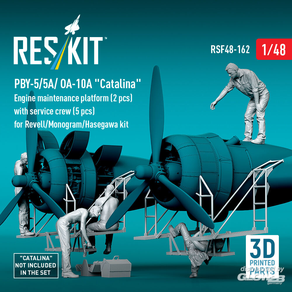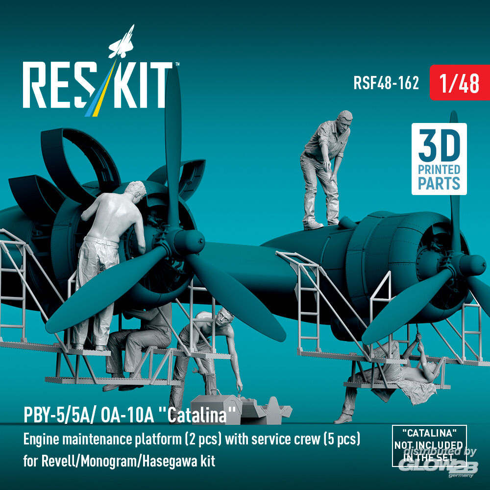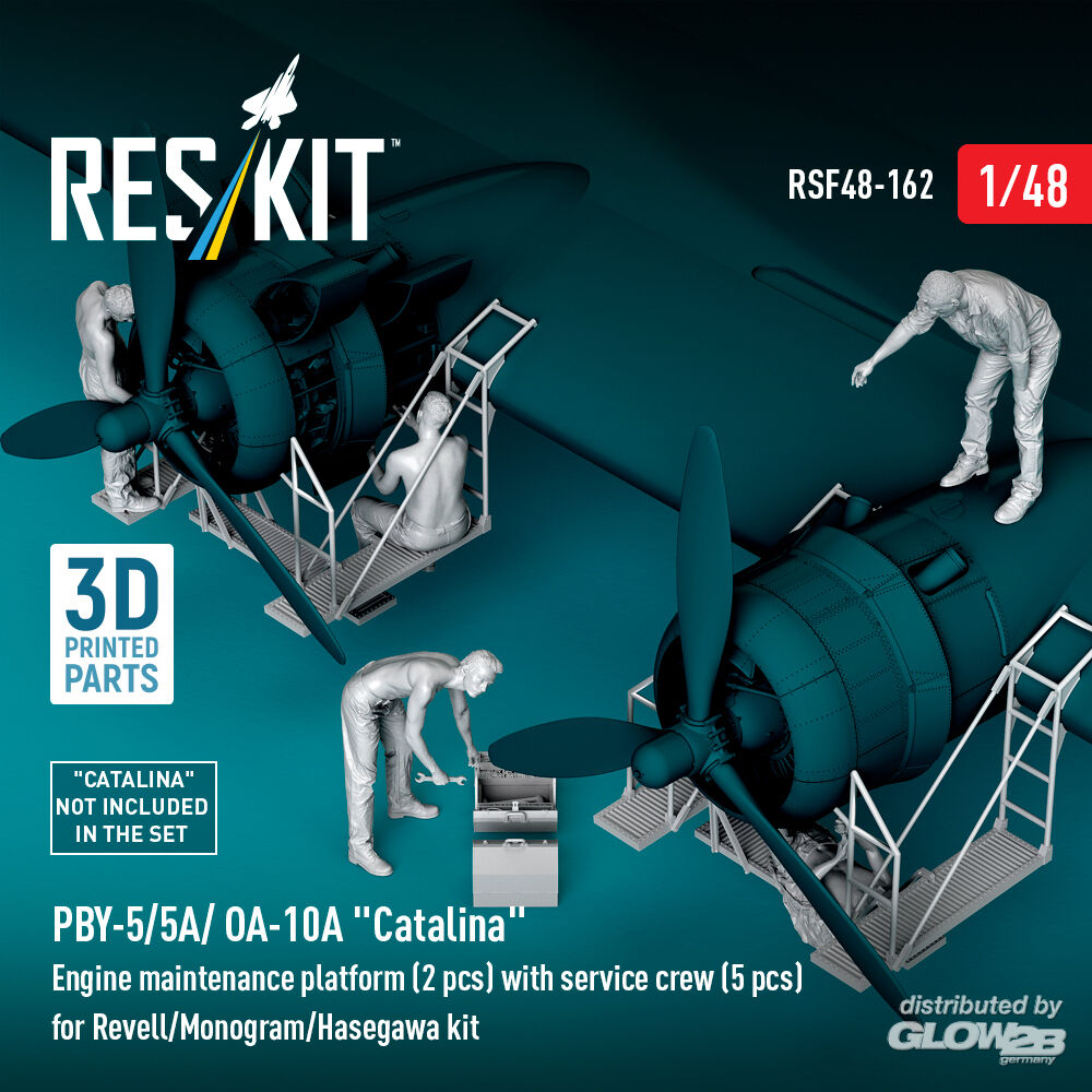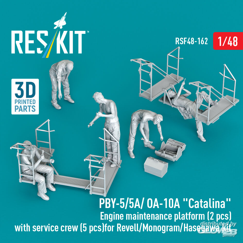 ResKit Models: PBY-5/5A/ OA-10A Catalina Engine maintenance platform (2 pcs) with service crew (5 pcs) for Revell/Monogram/Hasegawa kit (3D Printed) in 1:48 [4594301628]