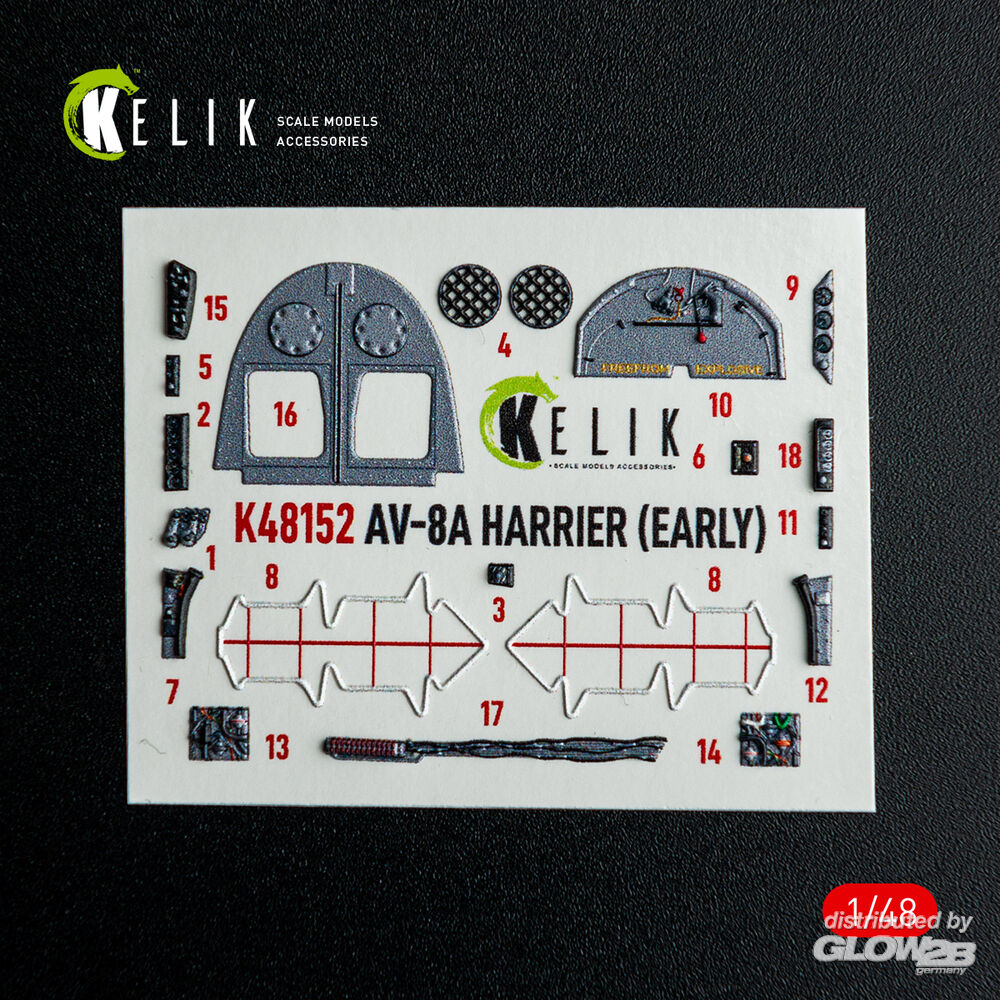 Kelik: AV-8A HARRIER (Early) - interior 3D decals for Kinetic kit in 1:48 [4594501646]