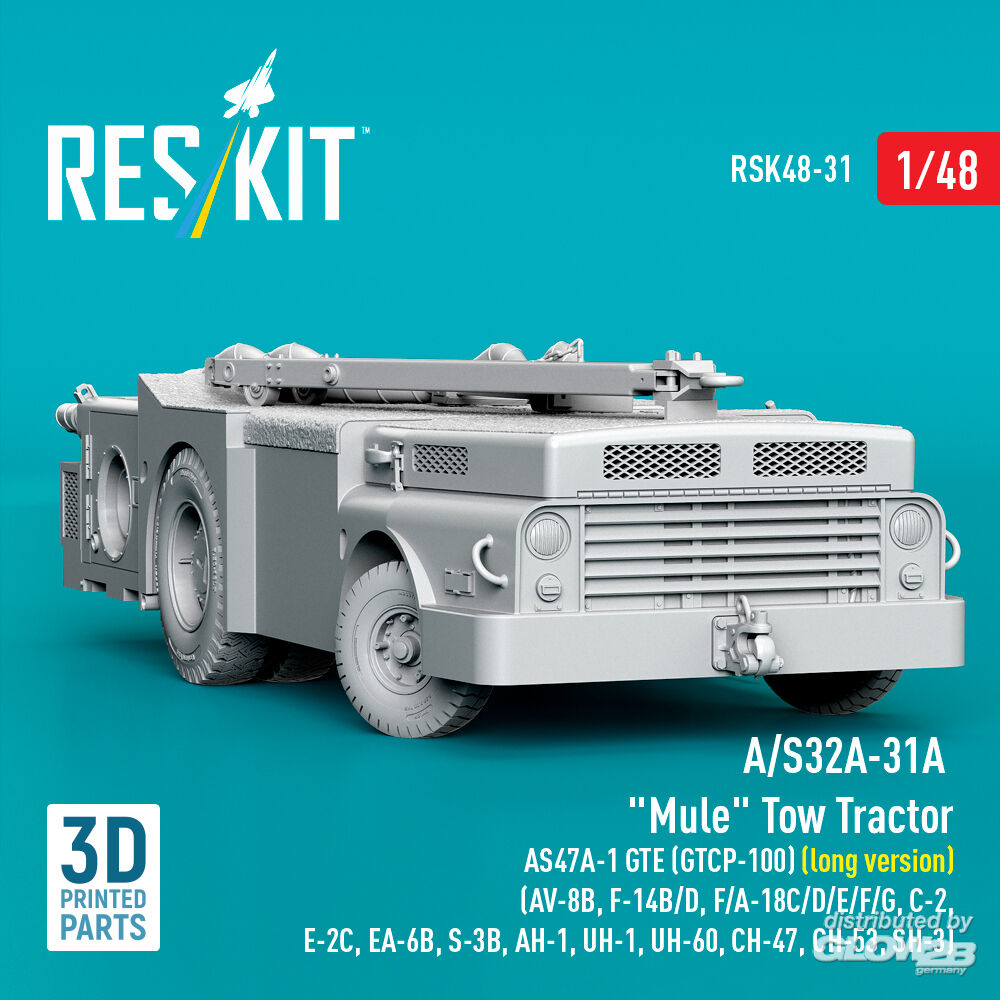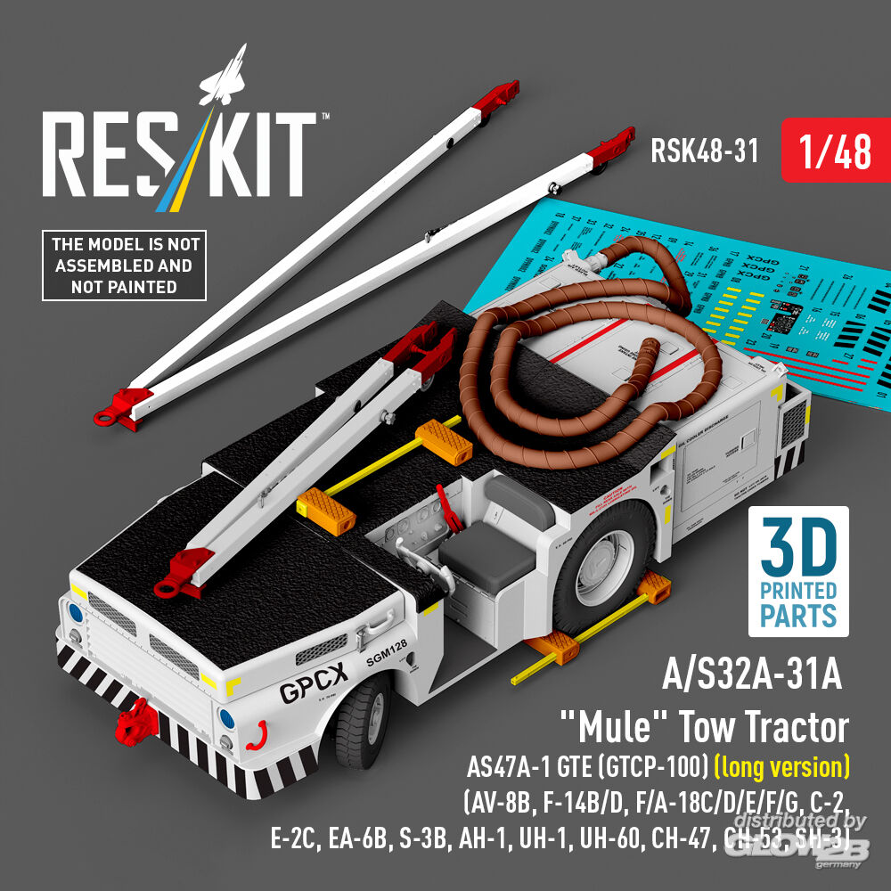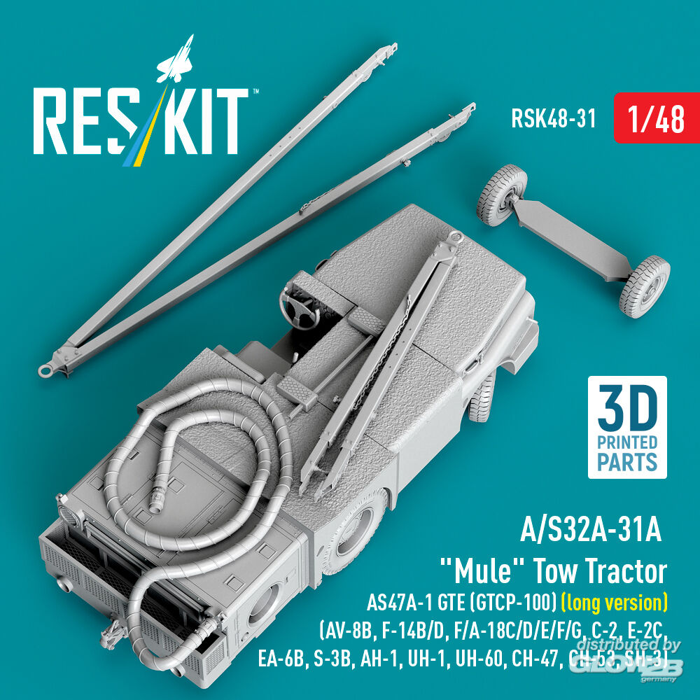 ResKit Models: A/S32A-31A Mule Tow Tractor AS47A-1 GTE (GTCP-100) (long version) (AV-8B, F-14B/D, F/A-18C/D/E/F/G, C-2, E-2?, EA-6B, S-3B, AH-1, UH-1, UH-60, CH-47, CH-53, SH-3) (3D Printed model kit) in 1:48 [4594700315]