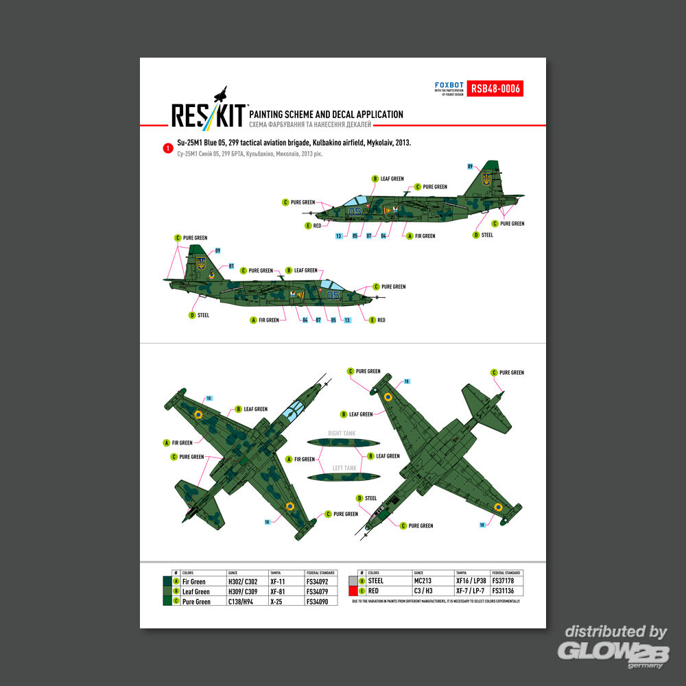 ResKit Models: Su-25 Frogfoot Clover (BLUE 03, 05, 41, 45) Ukrainian Air Forces (Main Decals with Stencils)(1/48) in 1:48 [4594800060]