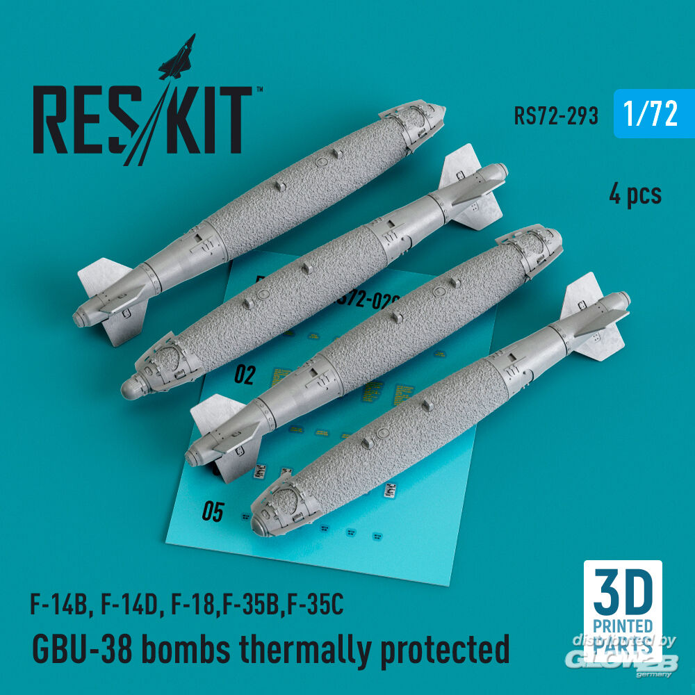 RESKIT Models: GBU-38 bombs thermally protected (4 pcs) (F-14B, F-14D, F-18,F-35B,F-35C) (3D Printed) in 1:72 [4595102934]