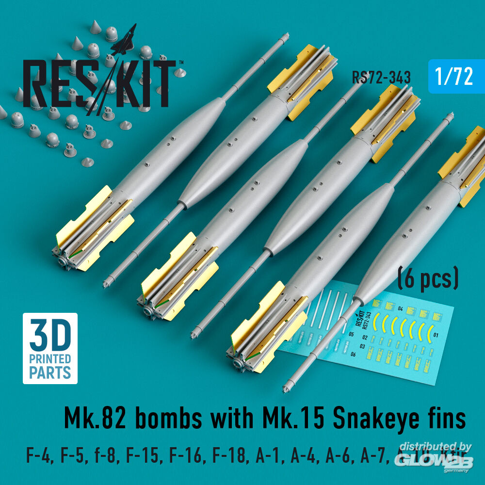 RESKIT Models: Mk.82 bombs with Mk.15 Snakeye fins (6 pcs) (F-4, F-5, F-8, F-15, F-16, F-18, A-1, A-4, A-6, A-7, A-10, Kfir) (3D Printed) in 1:72 [4595103436]
