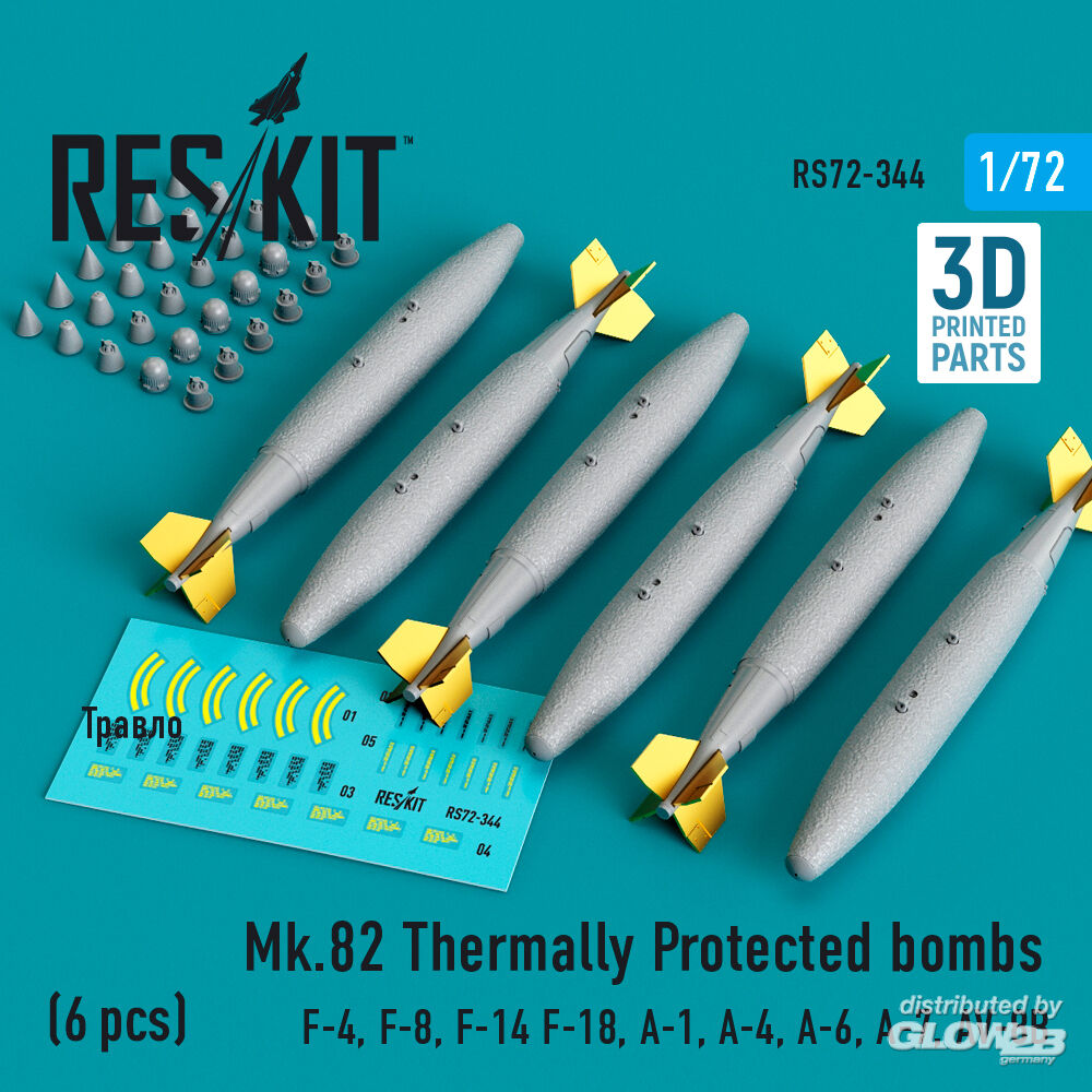 RESKIT Models: Mk.82 thermally protected bombs (6 pcs) (F-4, F-8, F-14 F-18, A-1, A-4, A-6, A-7, AV-8B) (3D Printed) in 1:72 [4595103443]