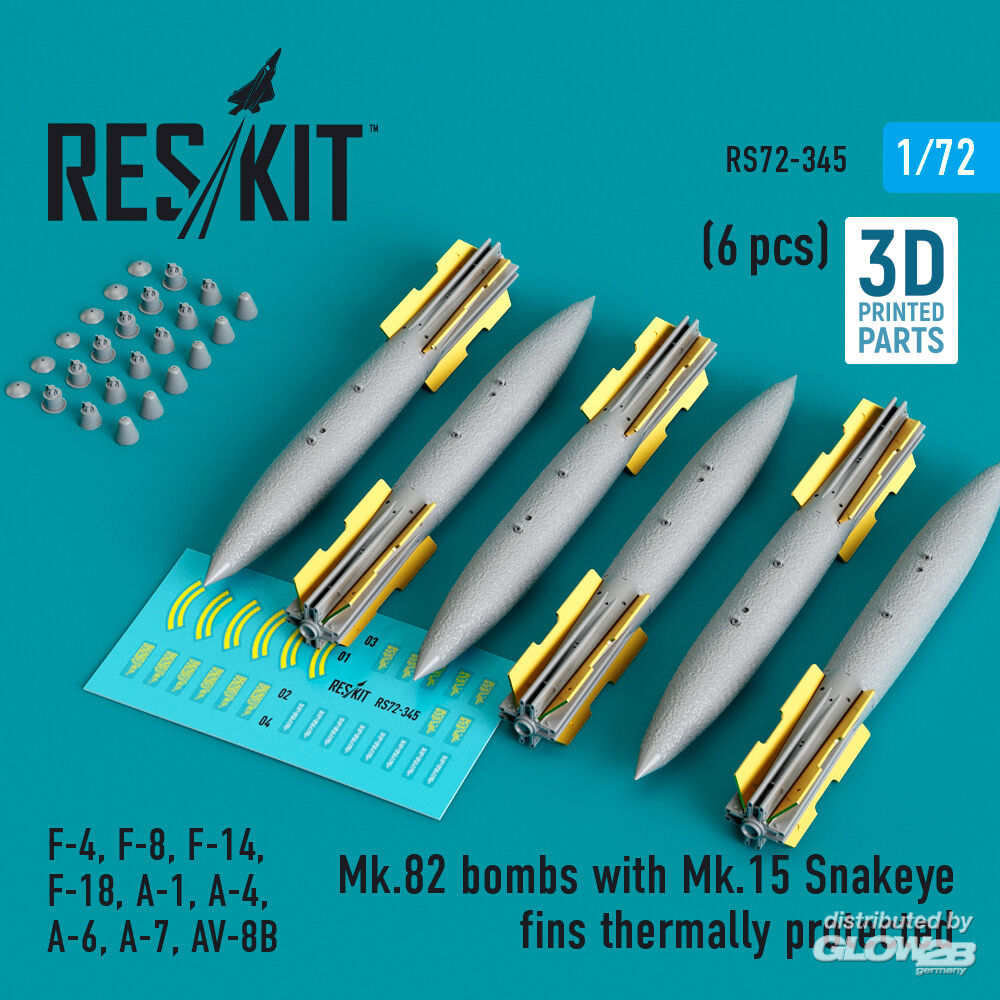 RESKIT Models: Mk.82 bombs with Mk.15 Snakeye fins thermally protected (6 pcs) (F-4, F-8, F-14 F-18, A-1, A-4, A-6, A-7, AV-8B) (3D Printed) in 1:72 [4595103450]