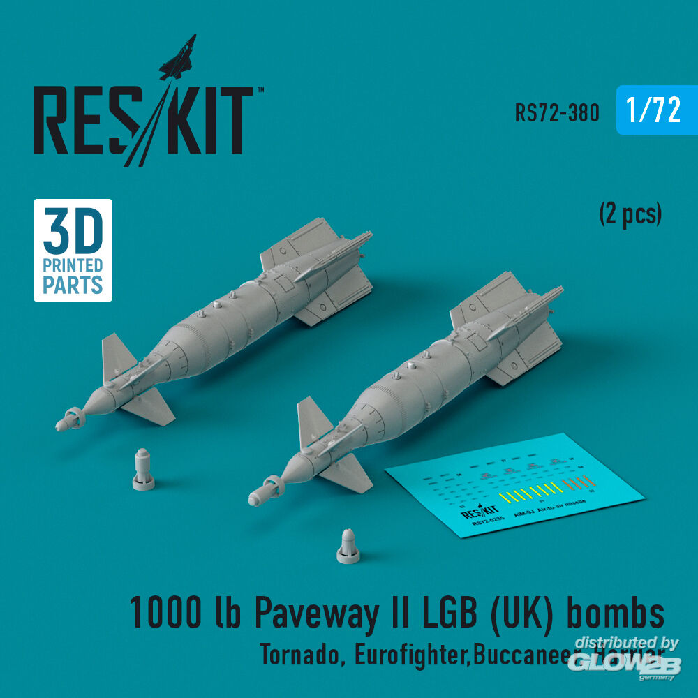 RESKIT Models: 1000 lb Paveway II LGB (UK) bombs (2 pcs) (Tornado, Eurofighter,Buccaneer, Harrier) (3D Printed) in 1:72 [4595103801]
