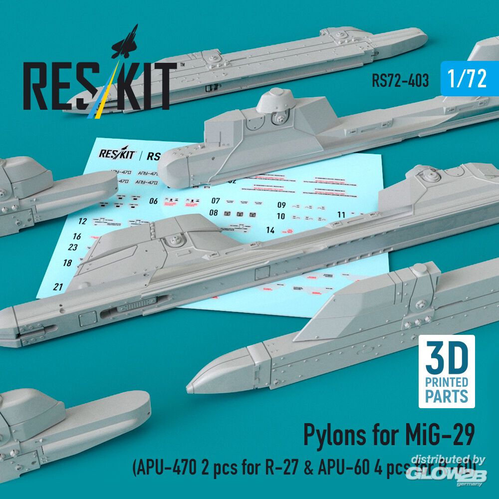 RESKIT Models: Pylons for MiG-29 (APU-470 2 pcs for R-27 & APU-60 4 pcs for R-60) (3D Printed) in 1:72 [4595104037]