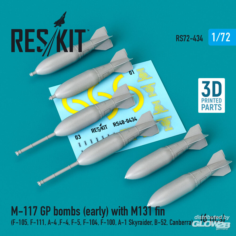 RESKIT Models: M-117 GP bombs (early) with M131 fin (6 pcs) (F-105, F-111, A-4 ,F-4, F-5, F-104, F-100, A-1 Skyraider, B-52, Canberra) (3D Printed) in 1:72 [4595104341]