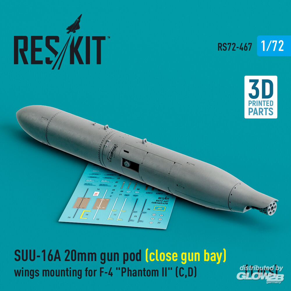RESKIT Models: SUU-16A 20mm gun pod (close gun bay) wings mounting for F-4 Phantom II (C,D) (1 pcs) (3D Printed) in 1:72 [4595104679]