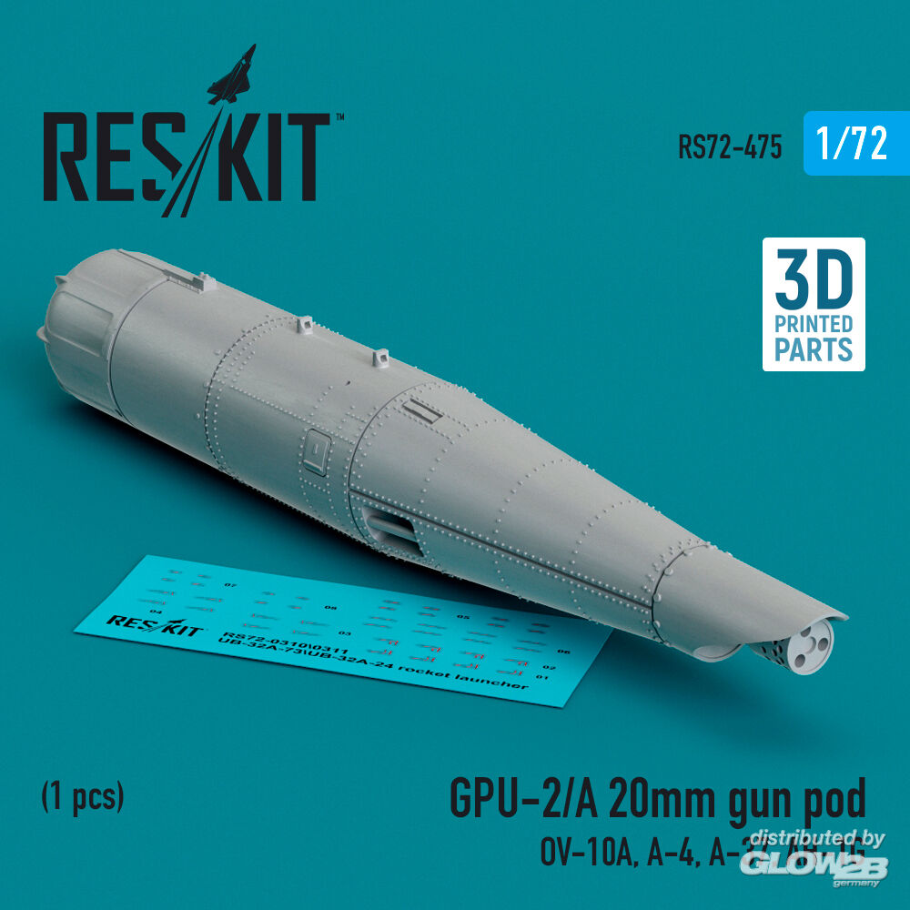 RESKIT Models: GPU-2/A 20mm gun pod (1 pcs) (OV-10A, A-4, A-37, AH-1G) (3D Printed) in 1:72 [4595104754]