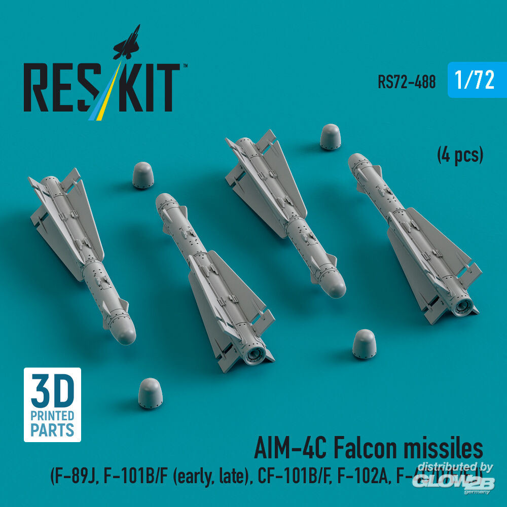 RESKIT Models: AIM-4C Falcon missiles (F-89J, F-101B/F (early, late), CF-101B/F, F-102A, F-4C/D/E/EJ) (4 pcs) (3d Printed) in 1:72 [4595104884]