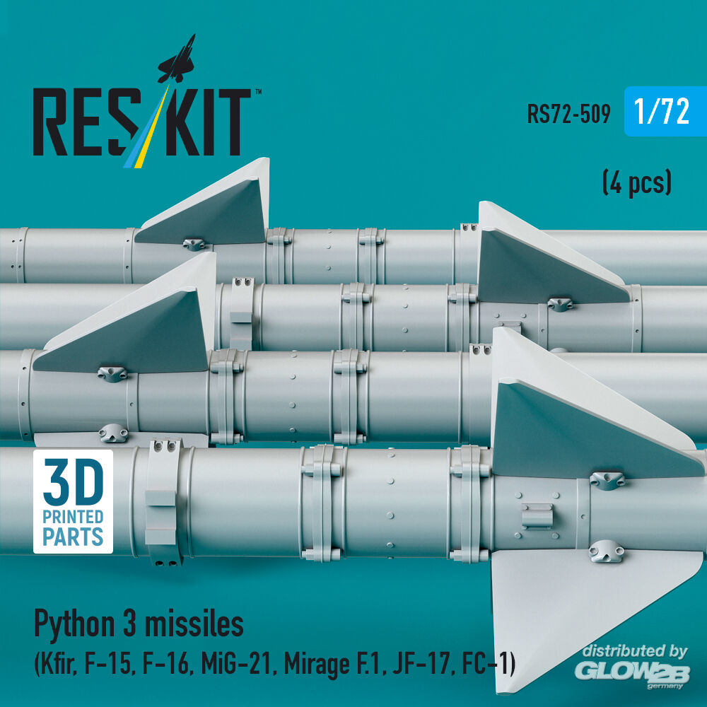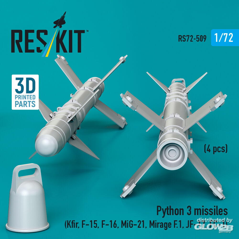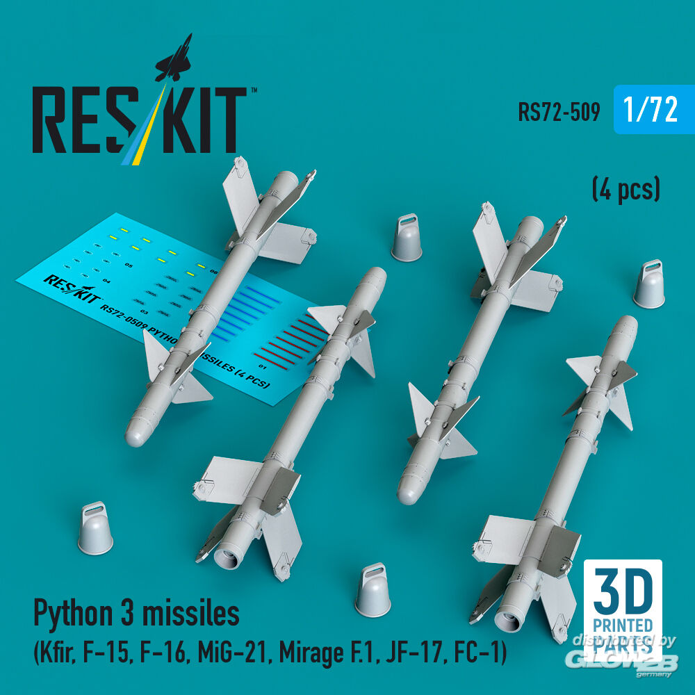 RESKIT Models: Python 3 missiles (4 pcs) (Kfir, F-15, F-16, MiG-21, Mirage F.1, JF-17, FC-1) (3D Printed) in 1:72 [4595105096]