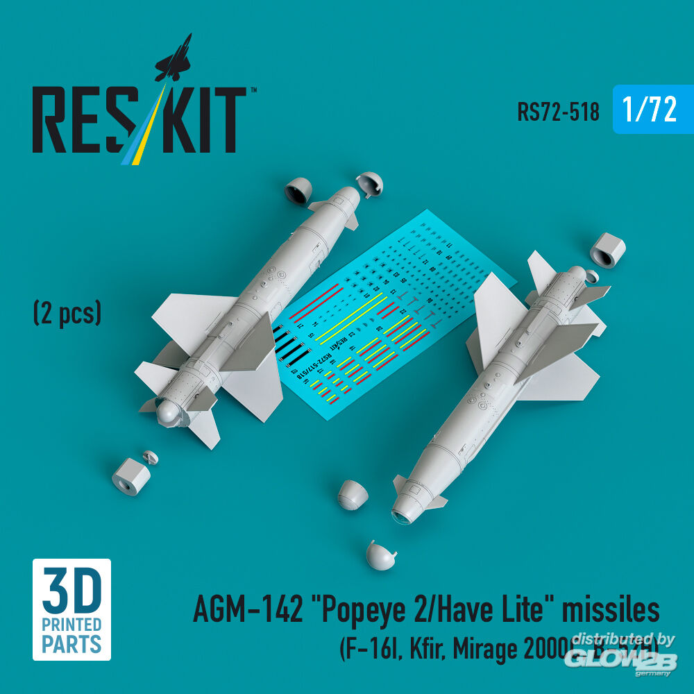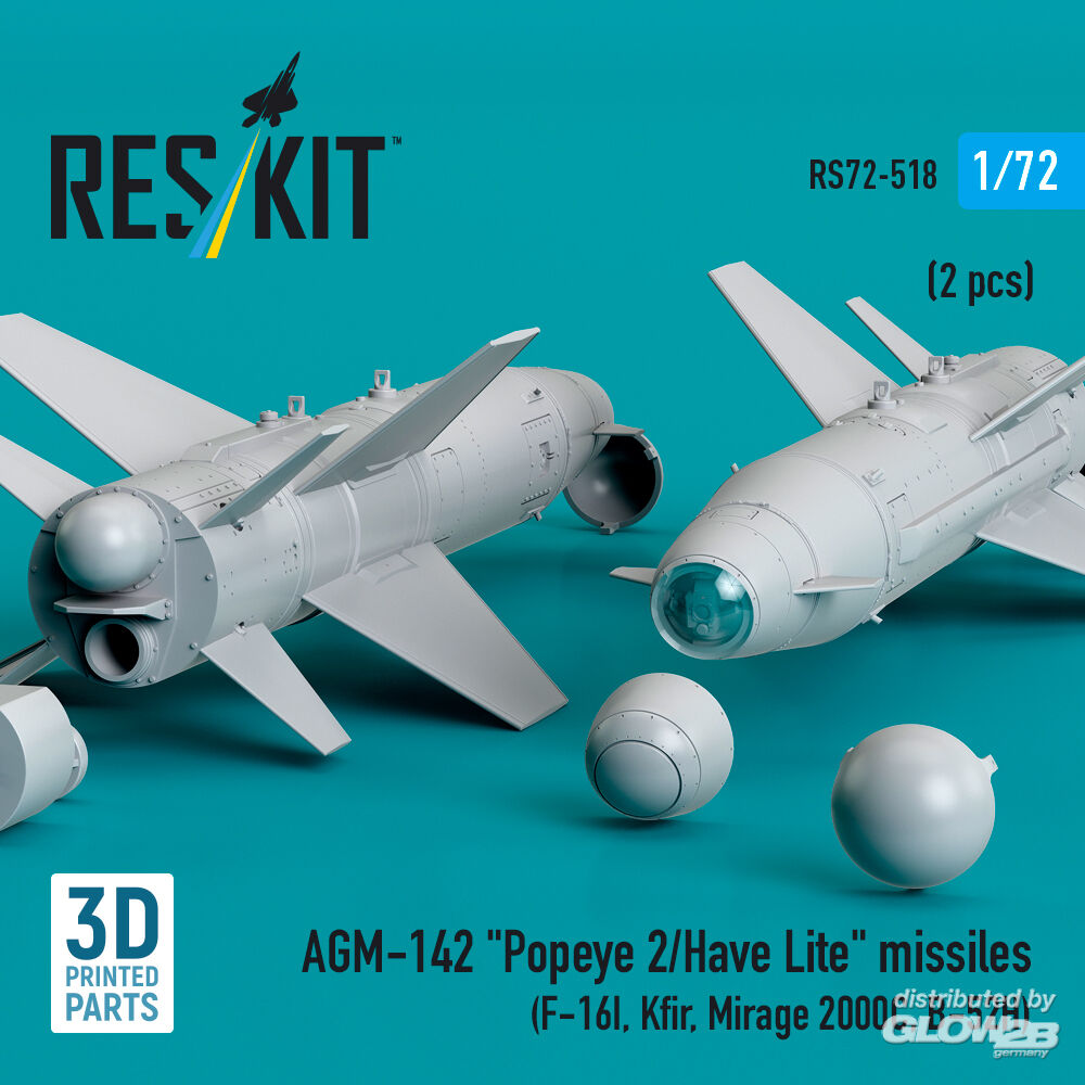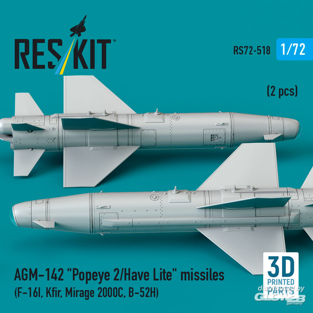 RESKIT Models: AGM-142 Popeye 2/Have Lite missiles (2 pcs) (F-16I, Kfir, Mirage 2000C, B-52H) (3D Printed) in 1:72 [4595105188]