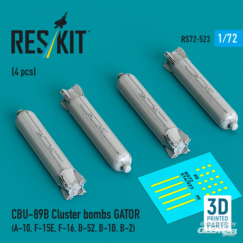 RESKIT Models: CBU-89B cluster bombs GATOR (4 pcs) (A-10, F-15E, F-16, B-52, B-1B, B-2) (3D Printed) in 1:72 [4595105232]