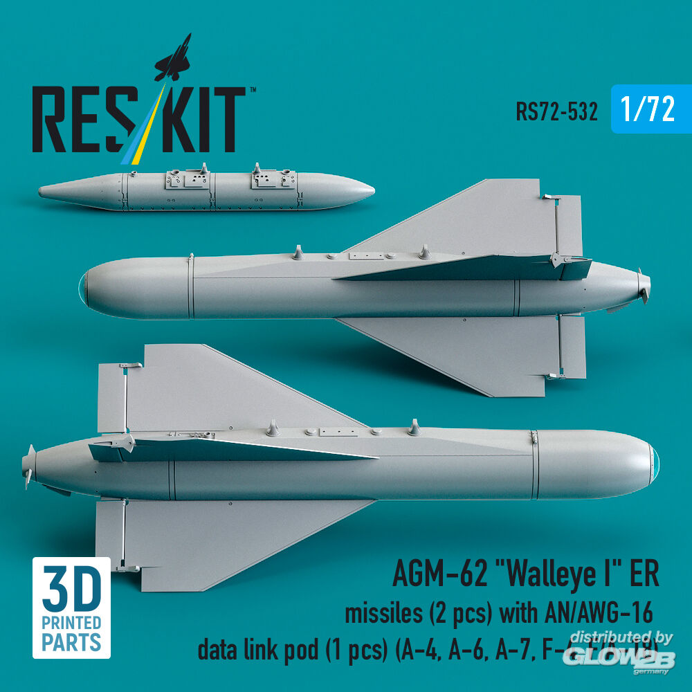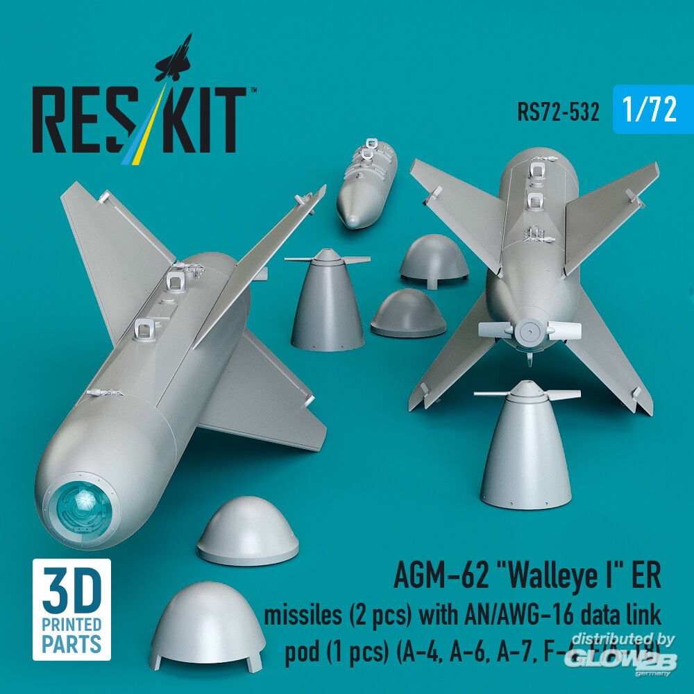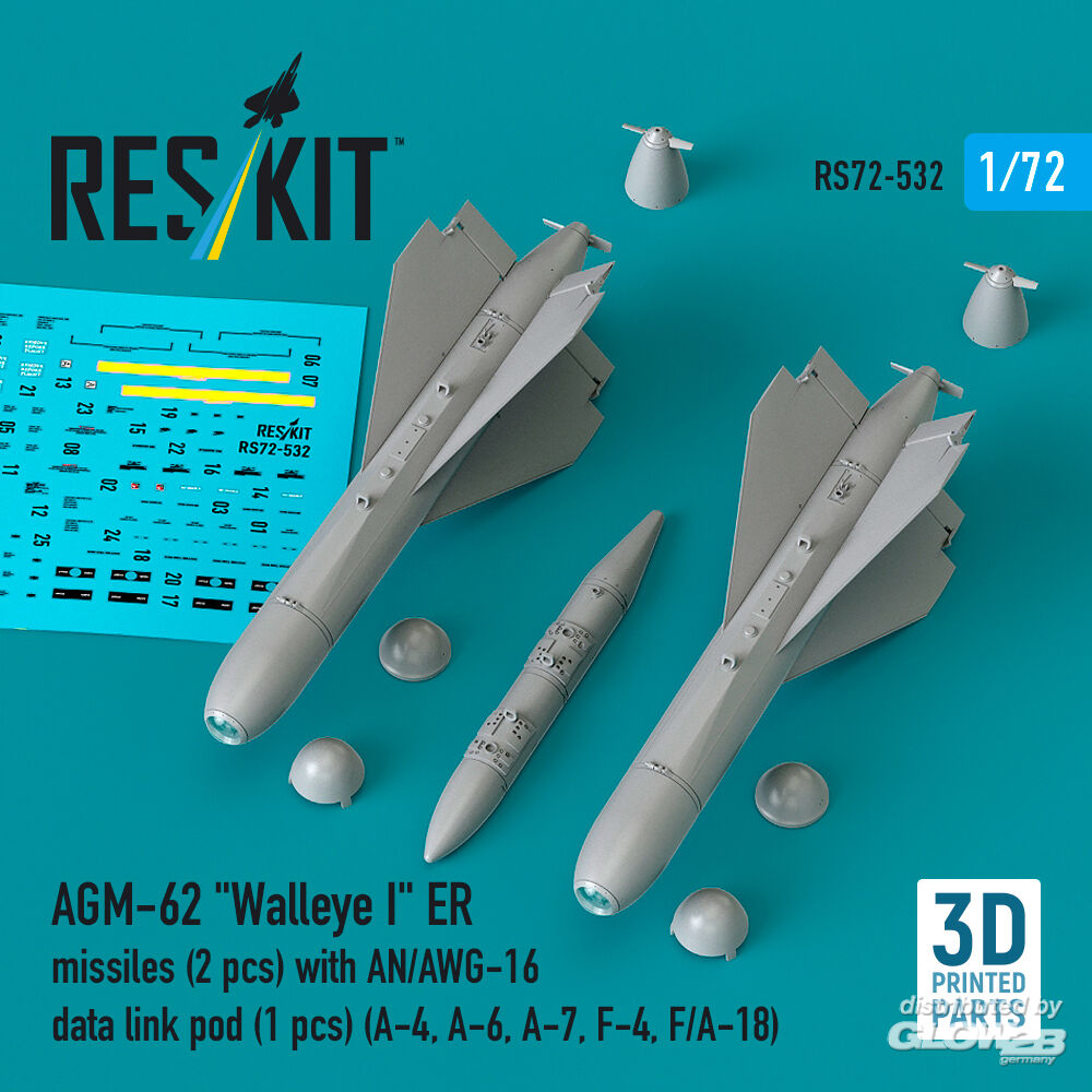 RESKIT Models: AGM-62 Walleye I ER missiles (2 pcs) with AN/AWG-16 data link pod (1 pcs) (A-4, A-6, A-7, F-4, F/A-18) (3D Printed) in 1:72 [4595105324]