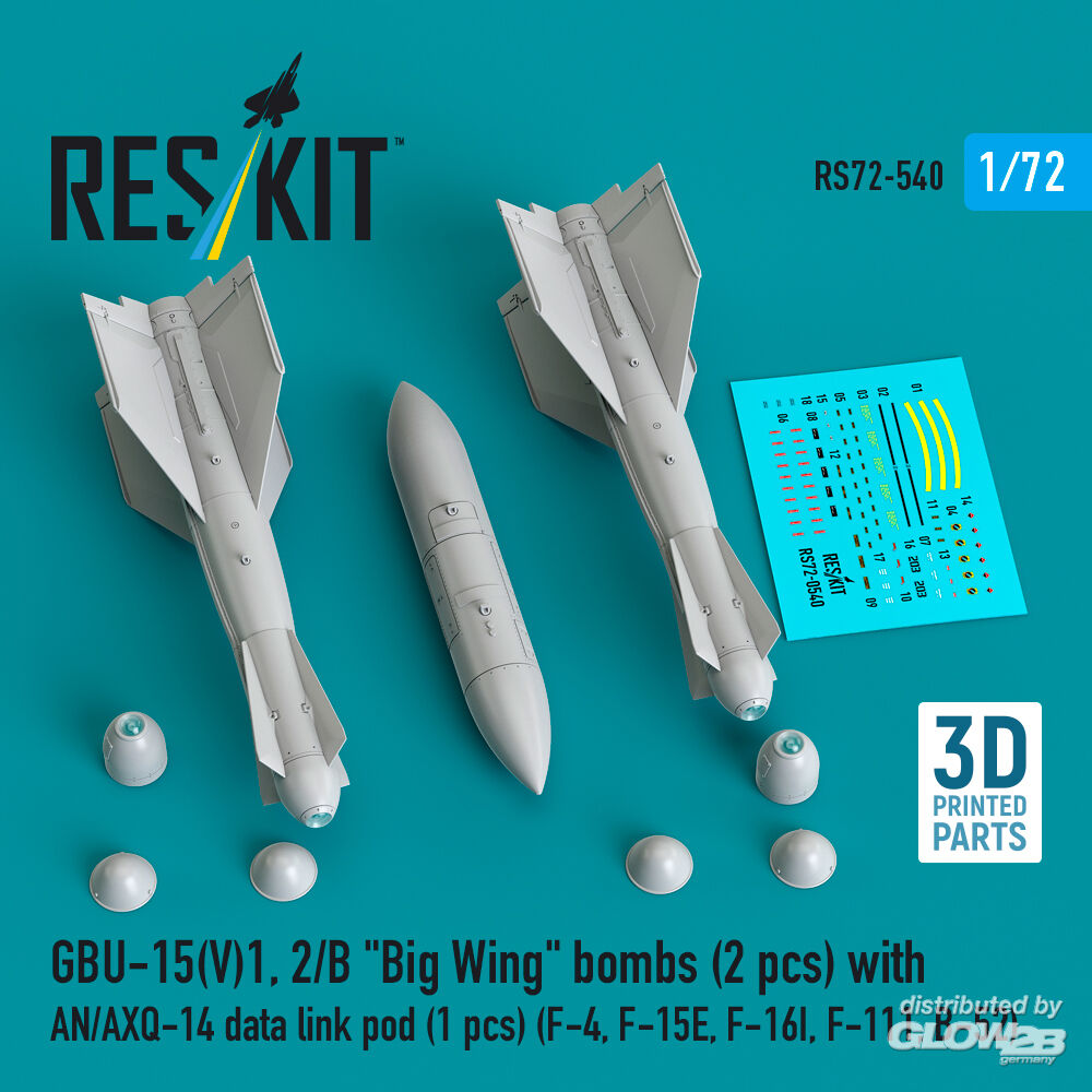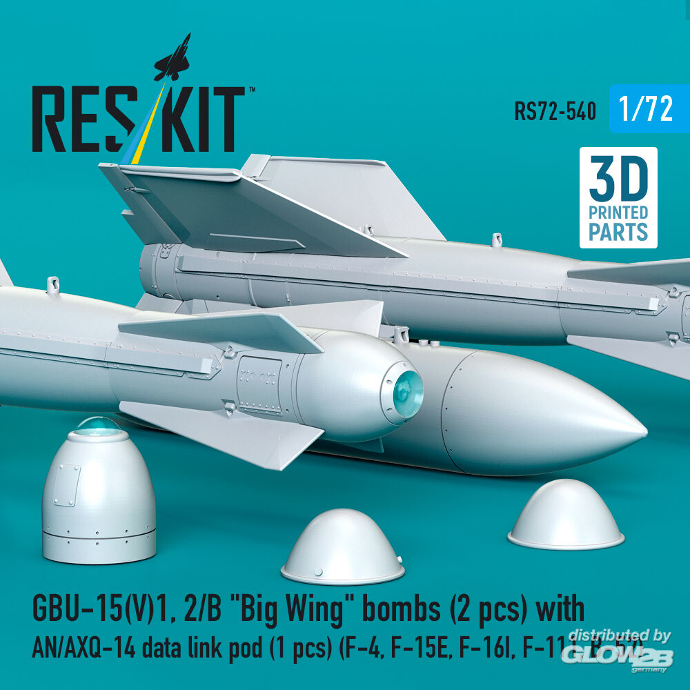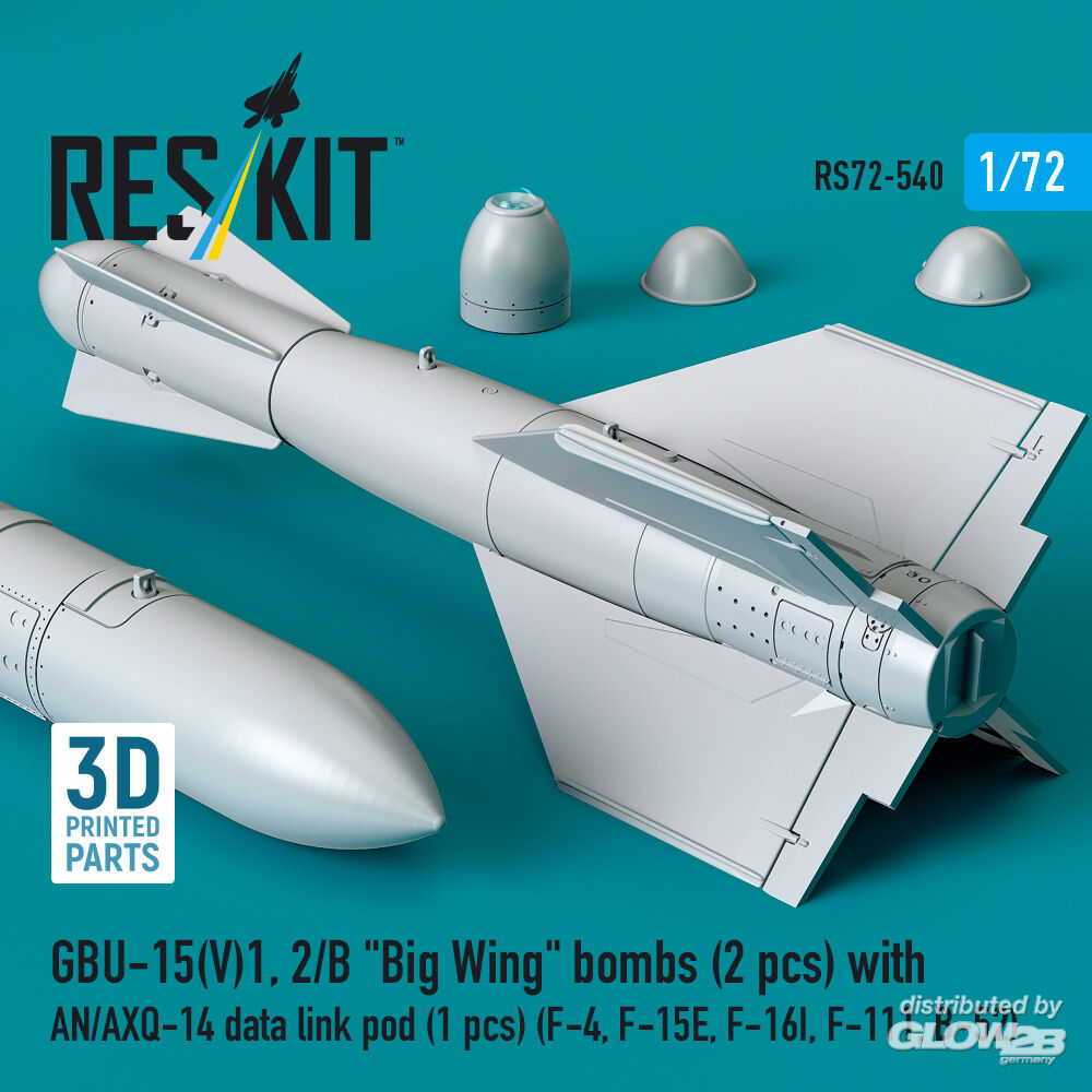 RESKIT Models: GBU-15(V)1,2/B Big Wing bombs (2 pcs) with AN/AXQ-14 data link pod (1 pcs) (F-4, F-15E, F-16I, F-111, B-52) (3D Printed) in 1:72 [4595105409]