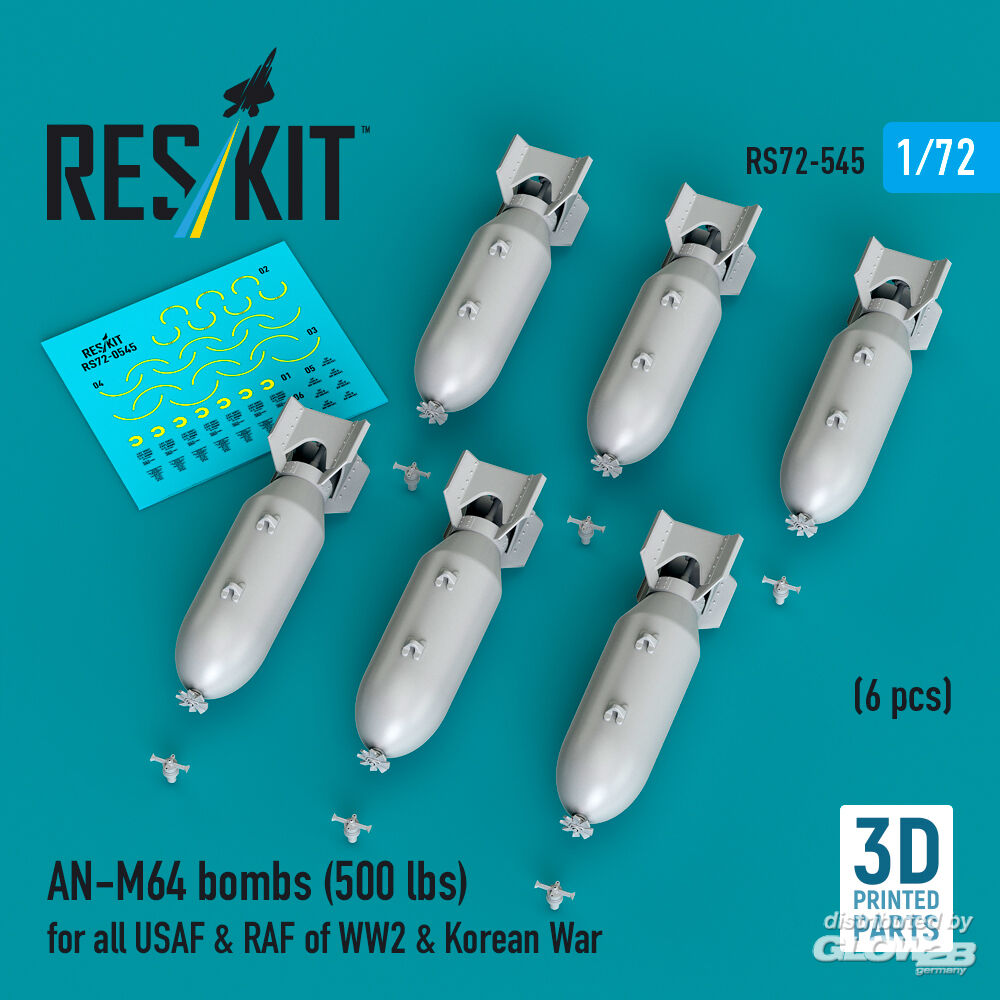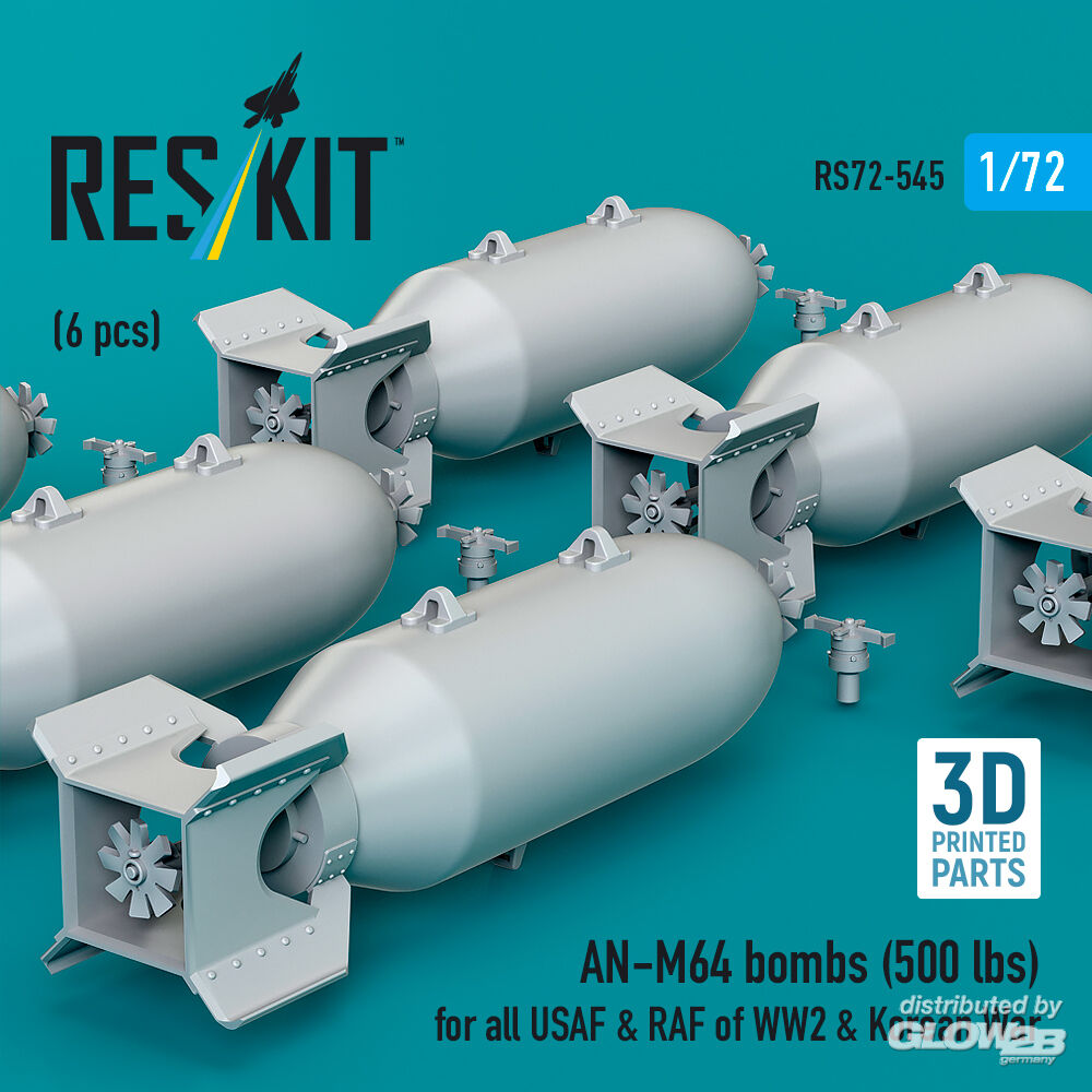 RESKIT Models: AN-M64 bombs (500 lbs) for all USAF & RAF of WW2 & Korean War (6 pcs) (3D Printed) in 1:72 [4595105454]