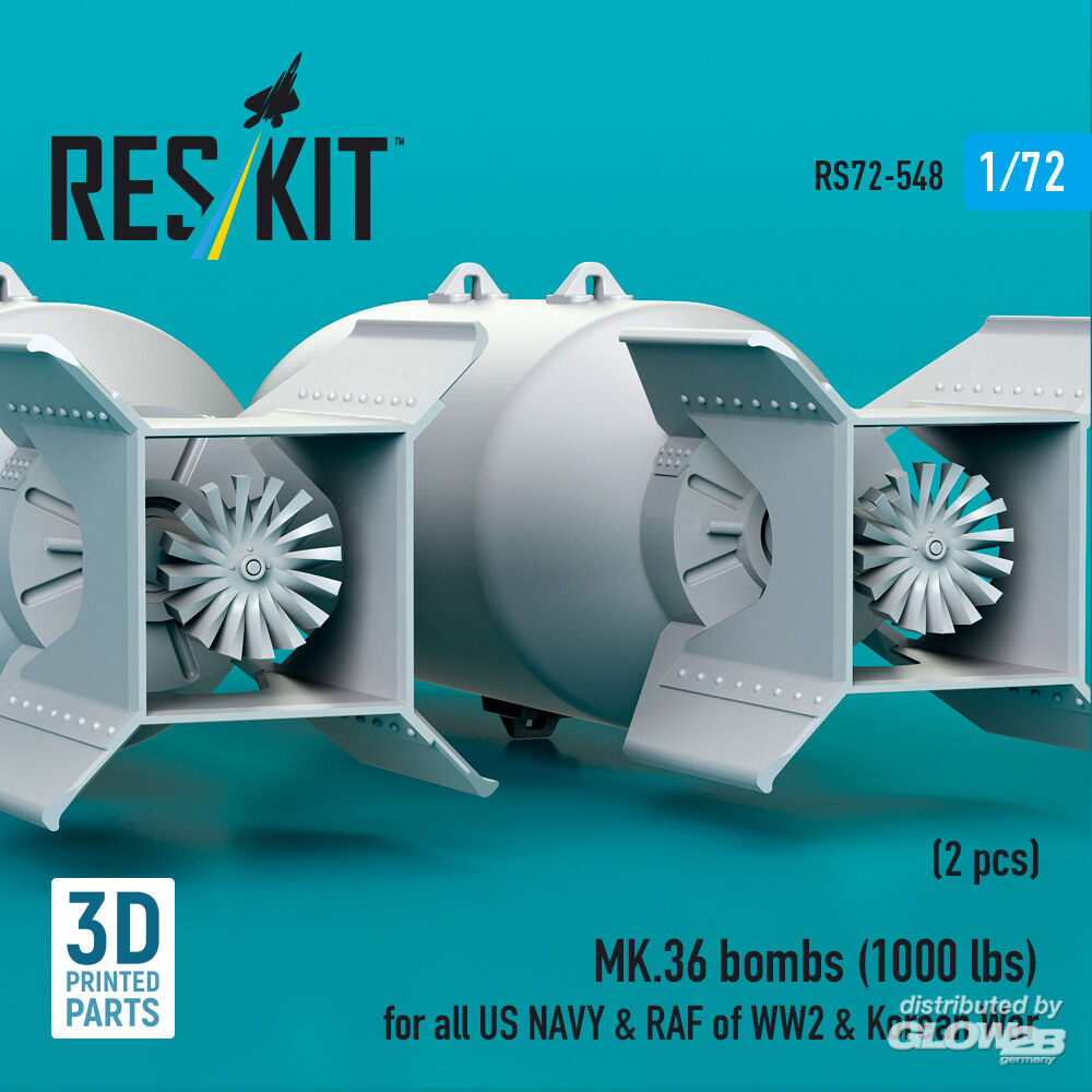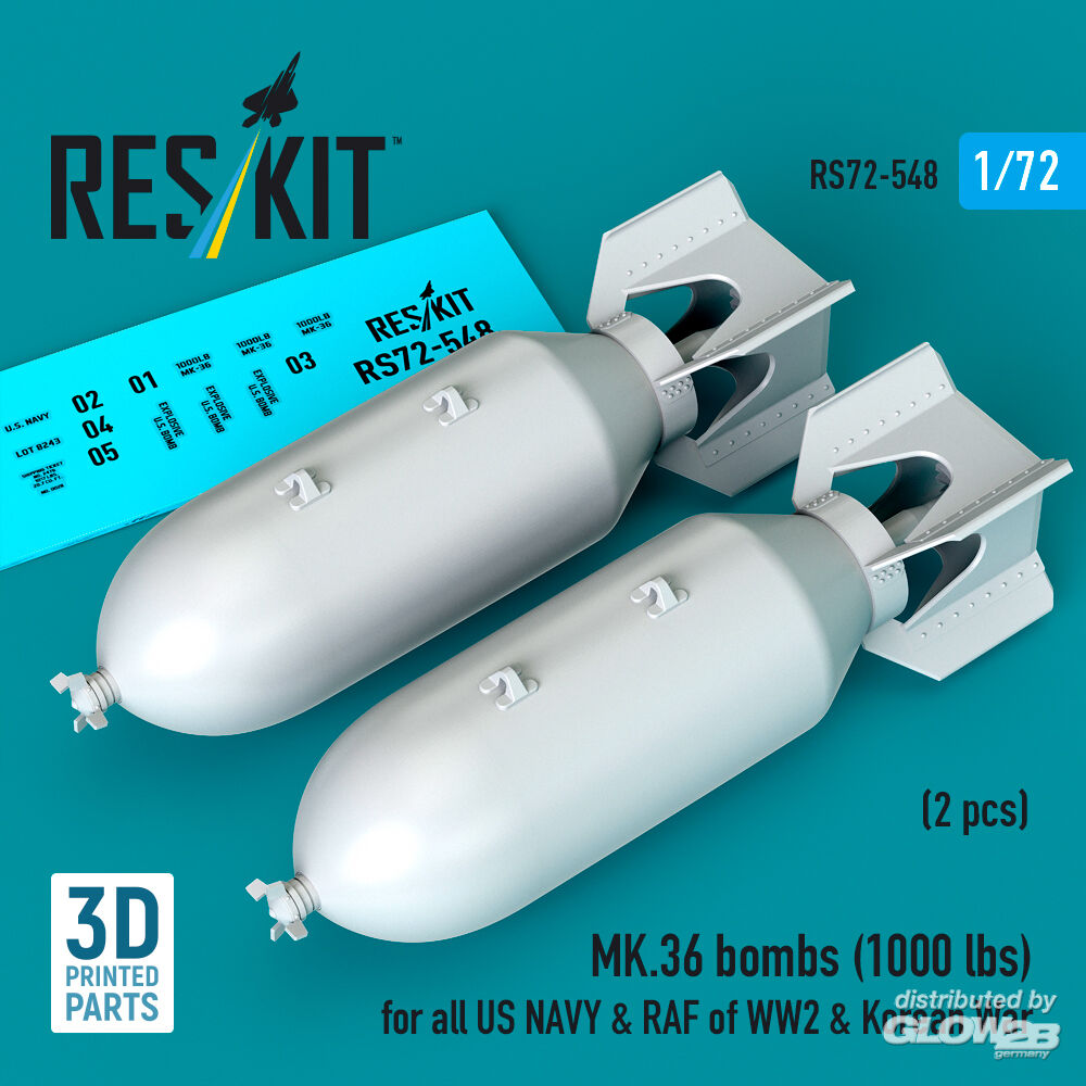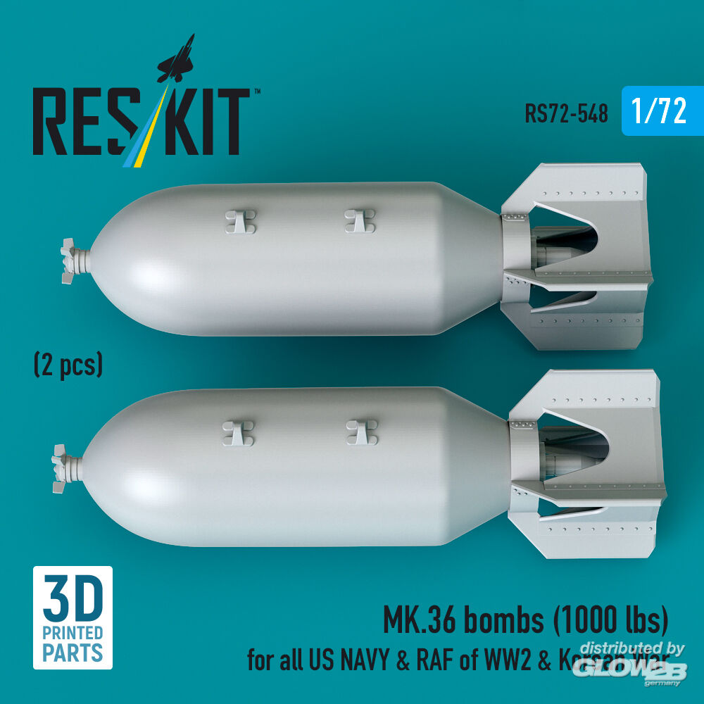 RESKIT Models: MK.36 bombs (1000 lbs) for all US NAVY & RAF of WW2 & Korean War (2 pcs) (3D Printed) in 1:72 [4595105485]