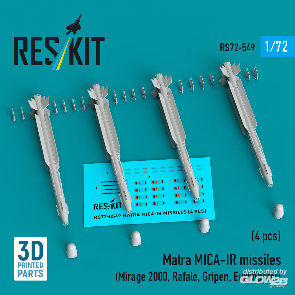RESKIT Models: Matra MICA-IR missiles (4 pcs) (Mirage 2000, Rafale, Gripen, Eurofighter) (3D Printed) in 1:72 [4595105492]