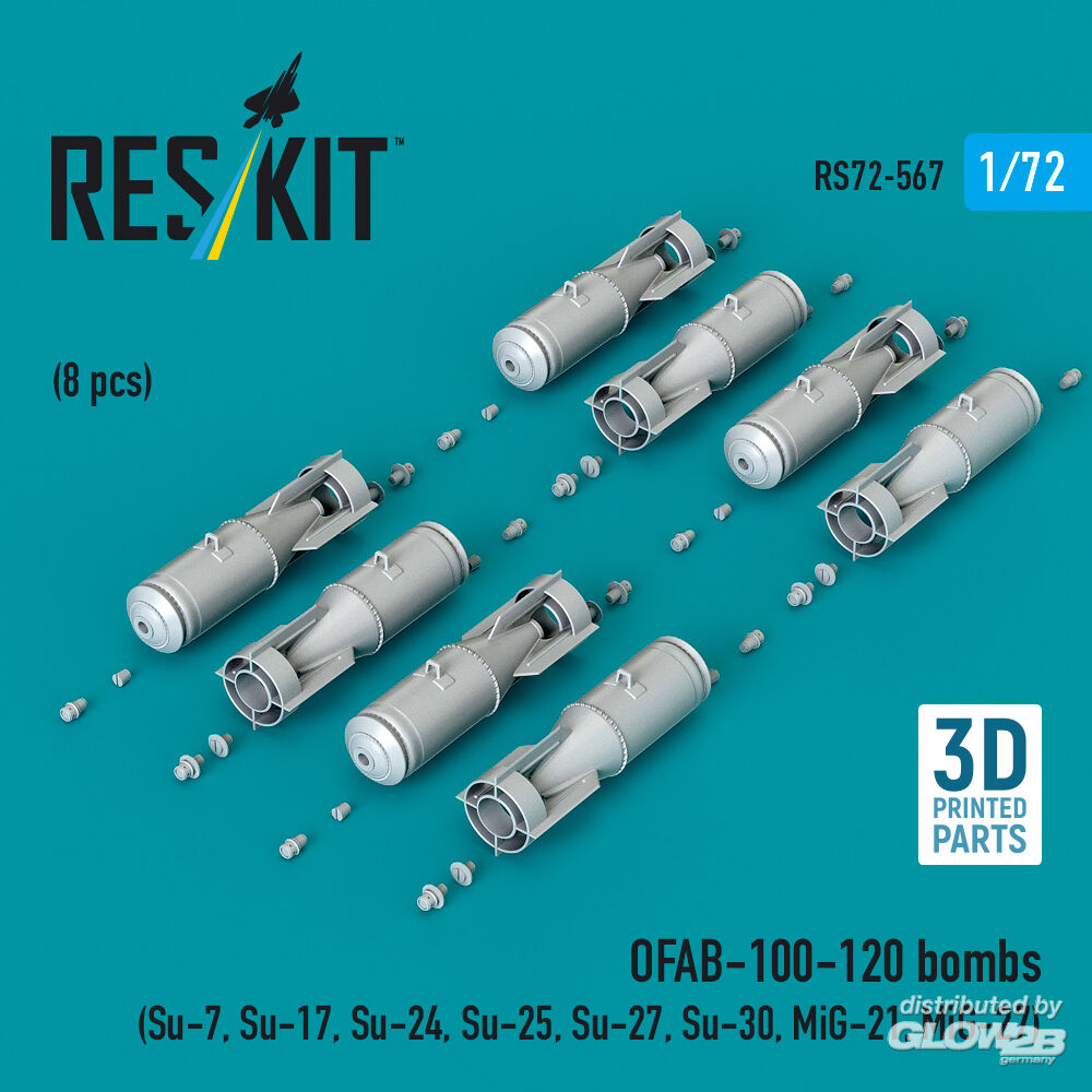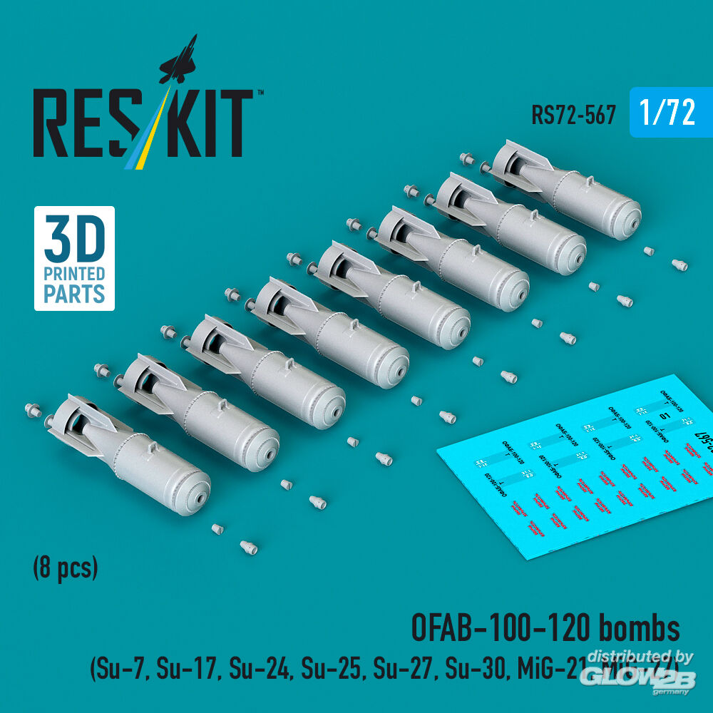 RESKIT Models: OFAB-100-120 bombs (8 pcs) (Su-7, Su-17, Su-24, Su-25, Su-27, Su-30, MiG-21, MiG-27) (3D Printed) in 1:72 [4595105676]
