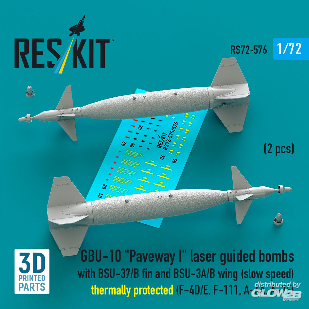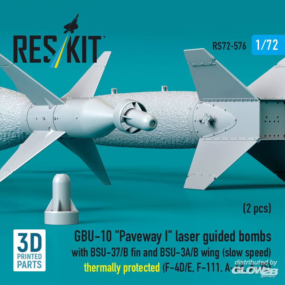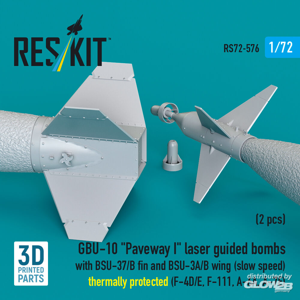 RESKIT Models: GBU-10 Paveway I laser guided bombs with BSU-37/B fin and BSU-3A/B wing (slow speed) thermally protected (2 pcs) (F-4D/E, F-111, A-6A, A-7E) (3D Printed) in 1:72 [4595105768]