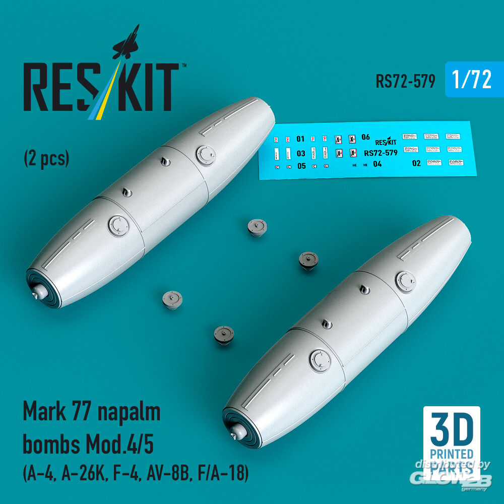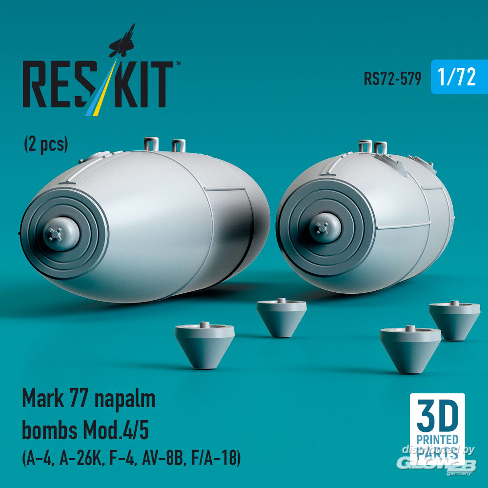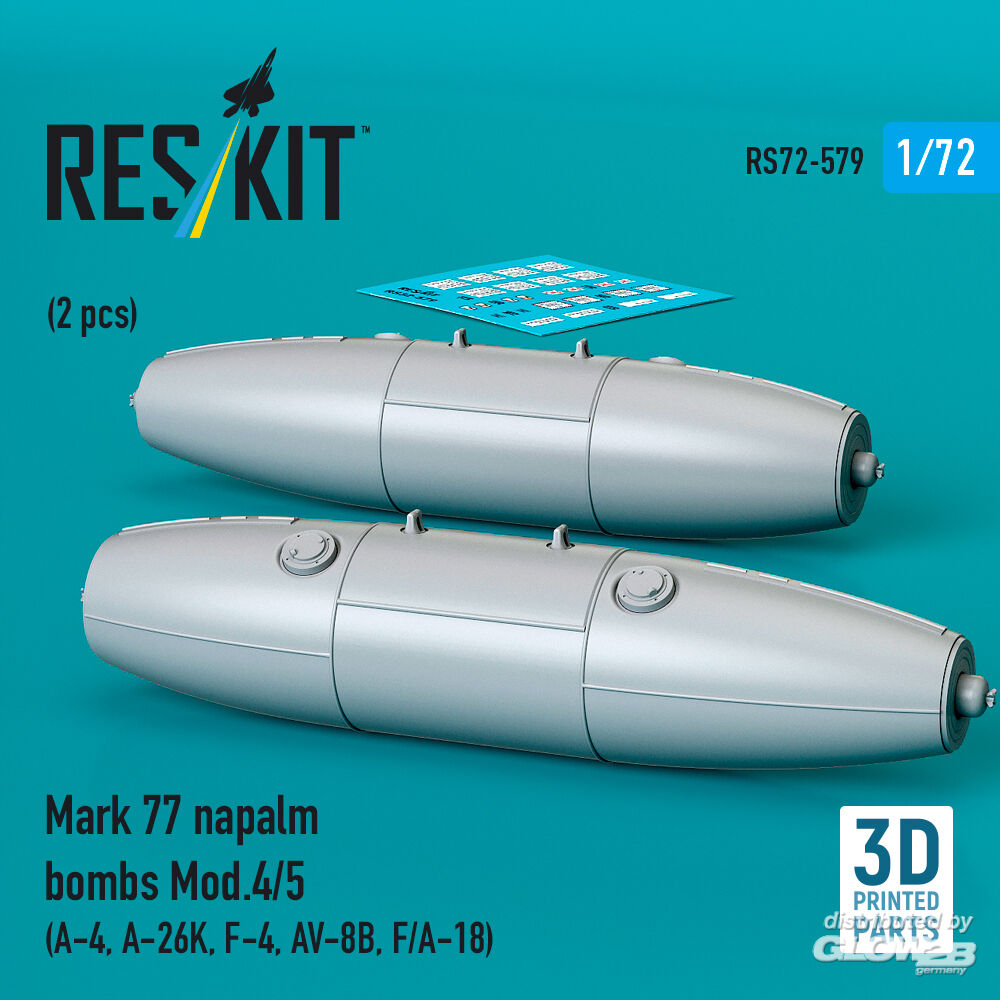 RESKIT Models: Mark 77 napalm bombs Mod.4/5 (2pcs) (A-4, A-26K, F-4, AV-8B, F/A-18) (3D Printed) in 1:72 [4595105799]