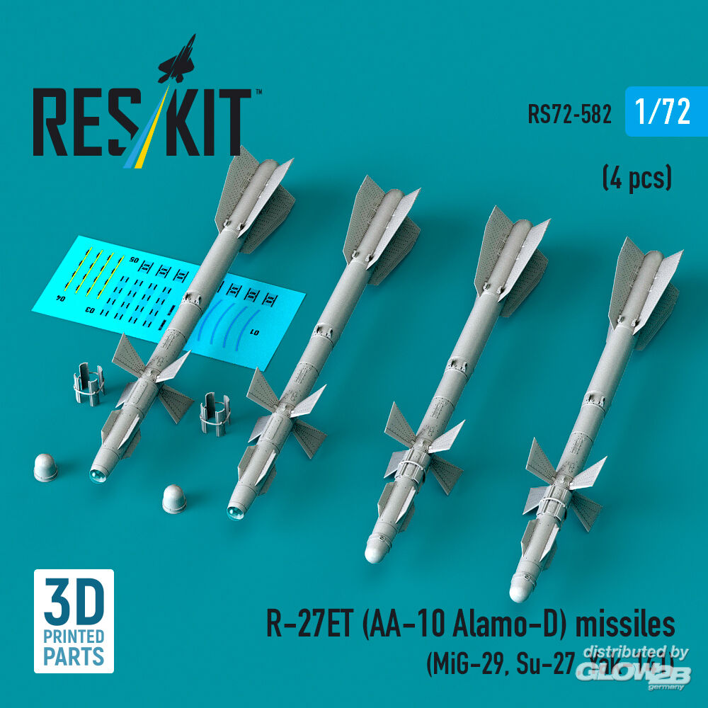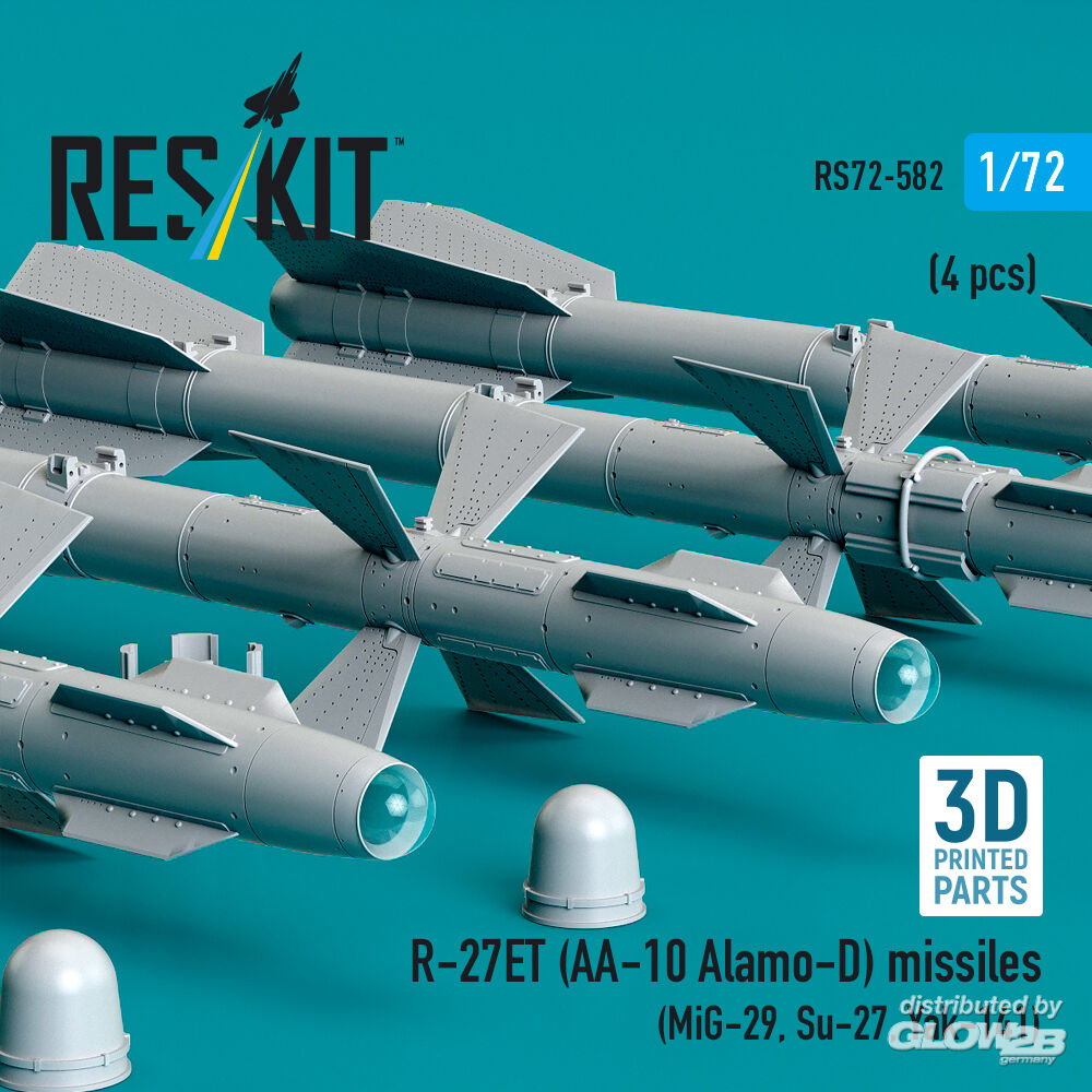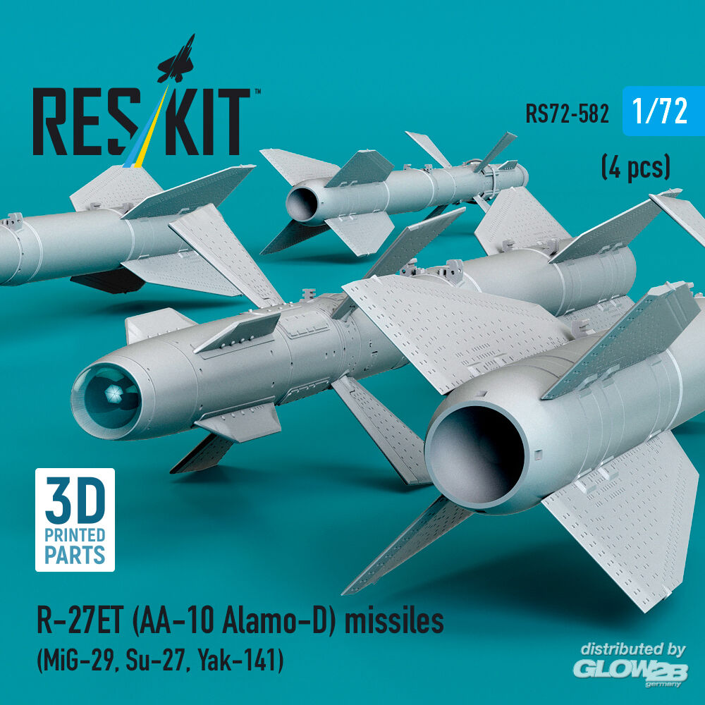 RESKIT Models: R-27ET (AA-10 Alamo-D) missiles (4 pcs) (MiG-29, Su-27, Yak-141) (3D Printed) in 1:72 [4595105829]
