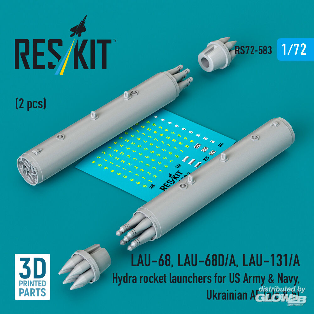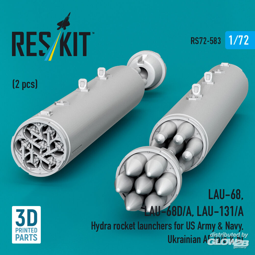 RESKIT Models: LAU-68, LAU-68D/A, LAU-131/A Hydra rocket launchers for US Army & Navy, Ukrainian AF (a/c & h) (2 pcs) (3D Printed) in 1:72 [4595105836]