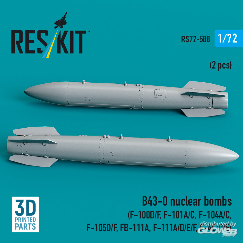 RESKIT Models: B43-0 nuclear bombs (2 pcs) (F-100D/F, F-101A/C, F-104A/C, F-105D/F, FB-111A, F-111A/E/D/F, F-4C/D/E) (3D Printed) in 1:72 [4595105881]