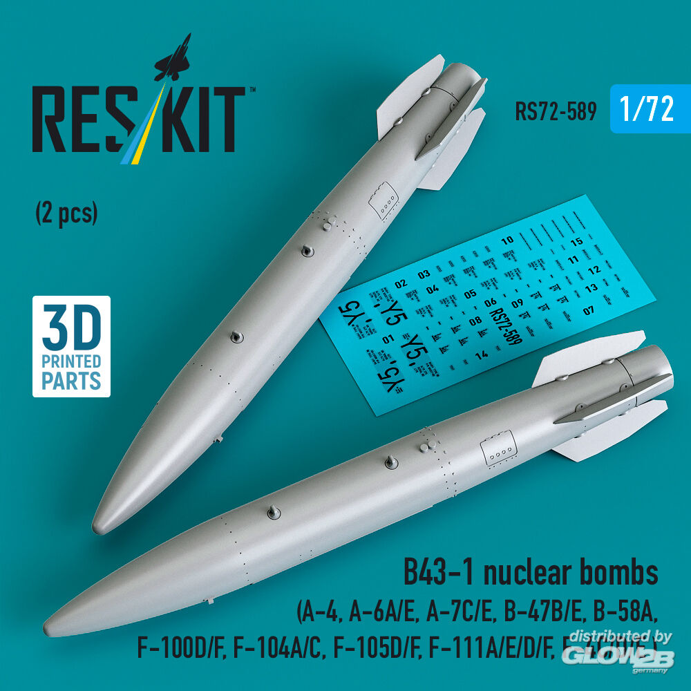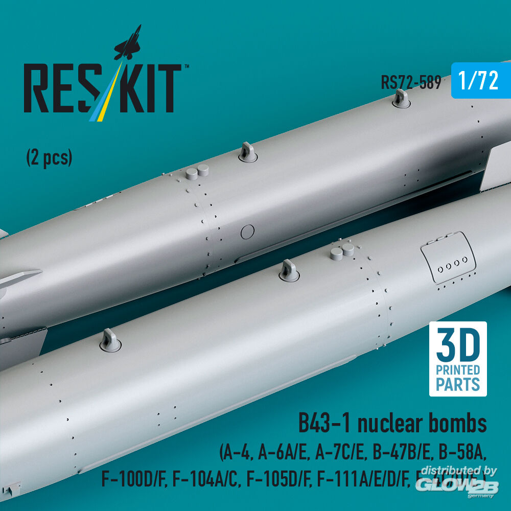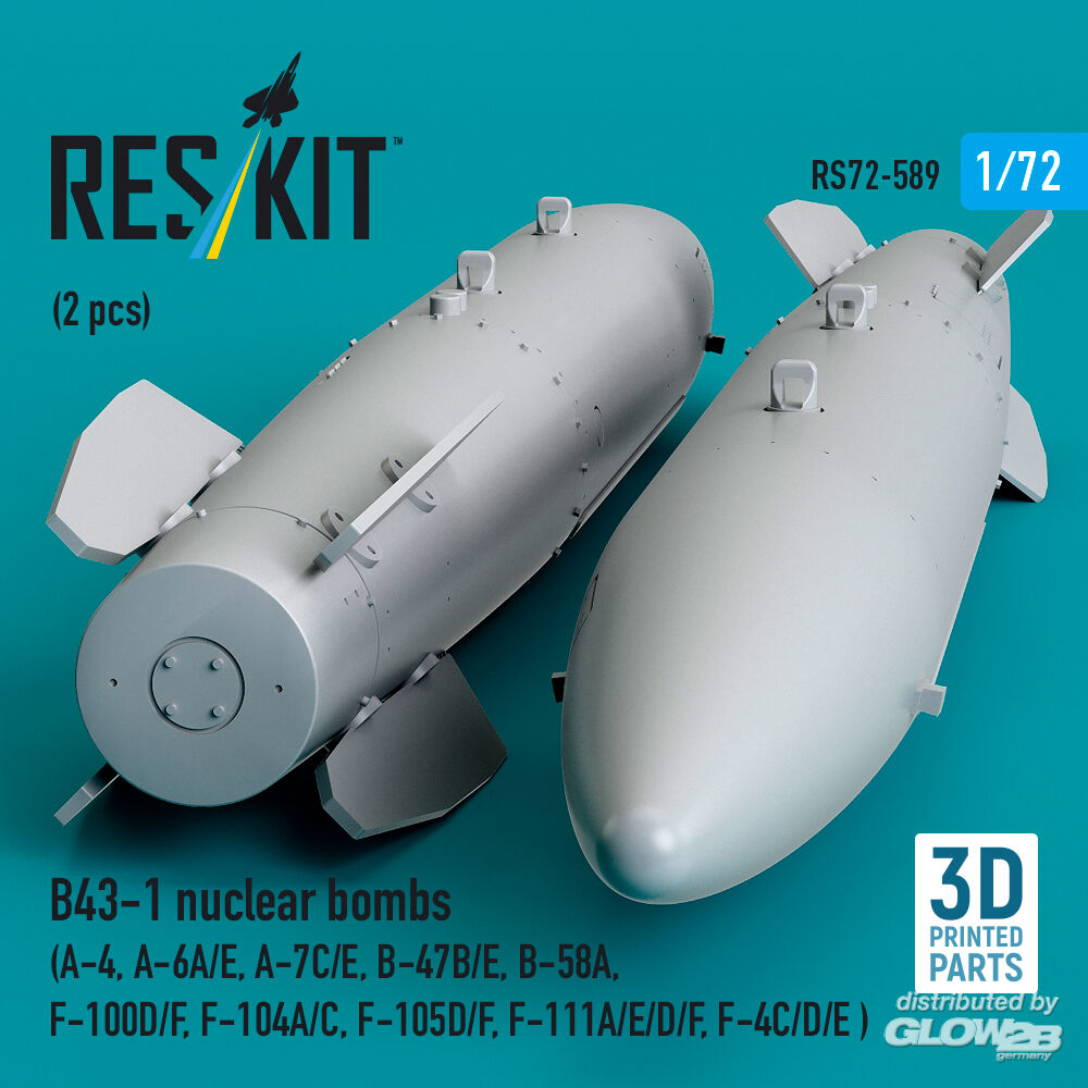 RESKIT Models: B43-1 nuclear bombs (2 pcs) (A-4, A-6A/E, A-7C/E, B-47B/E, B-58A, F-100D/F, F-104A/C, F-105D/F, F-111A/E/D/F, F-4C/D/E ) (3D Printed) in 1:72 [4595105898]