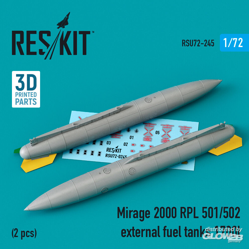 RESKIT Models: Mirage 2000 RPL 501/502 external fuel tanks 1700lt (2 pcs) (3D Printed) in 1:72 [4595202450]